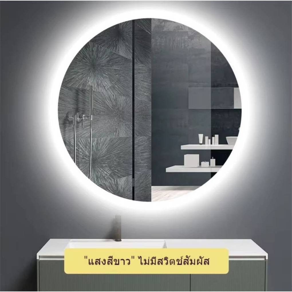 LEDกระจกห้องน้ำรูปวงกลมควบคุมด้วยการสัมผัสและมีไฟสามสี ขนาด 50/60/70 /80ซม.