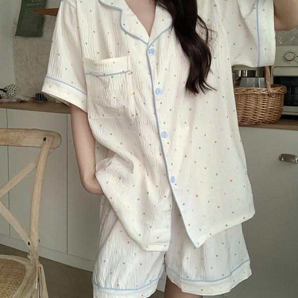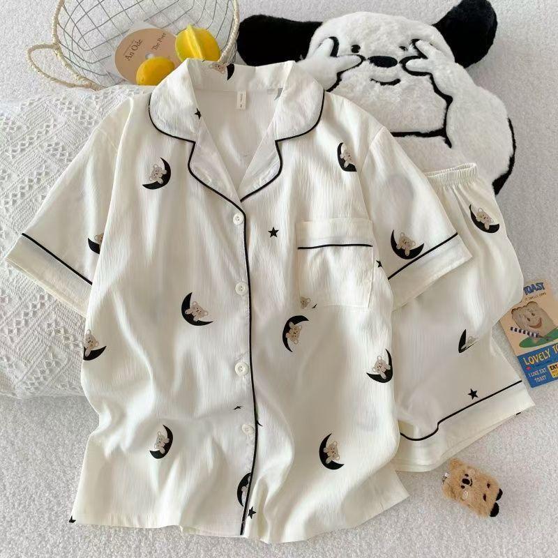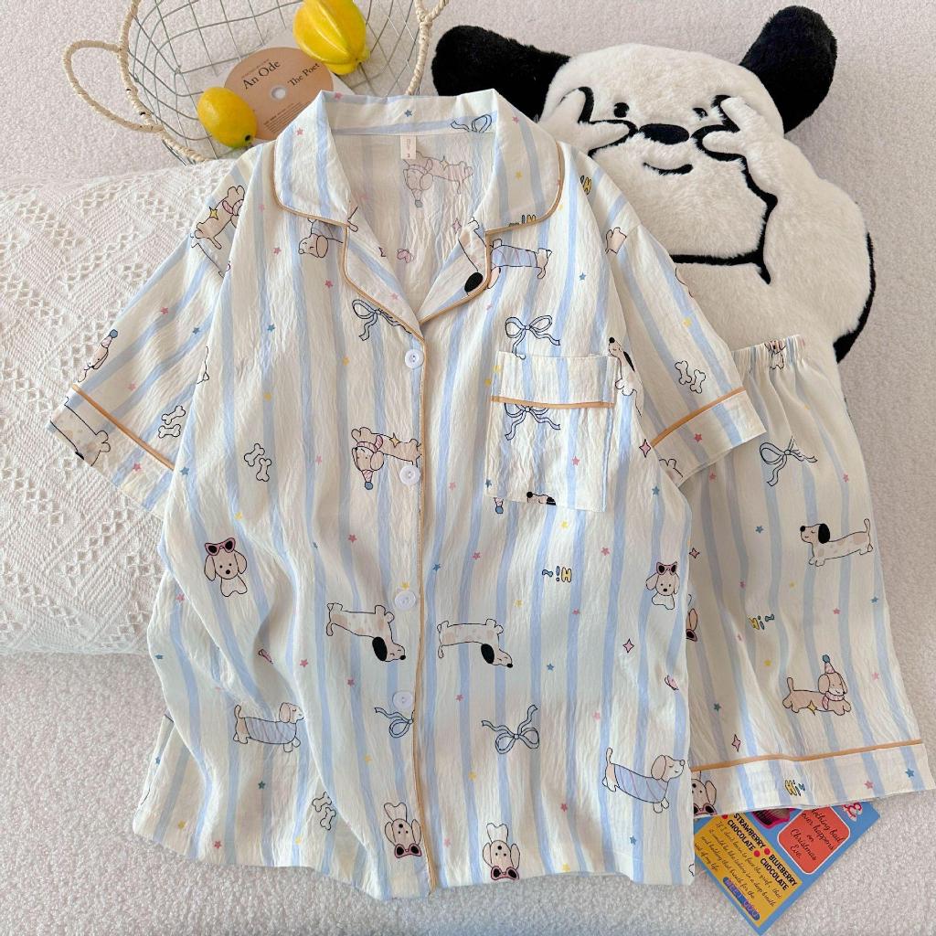 เซตชุดนอนแขนสั้น-ขาสั้นผ้าไหมญี่ปุ่นพิมพ์ลายสุดน่ารักรวมชุดนอน พร้อมส่ง