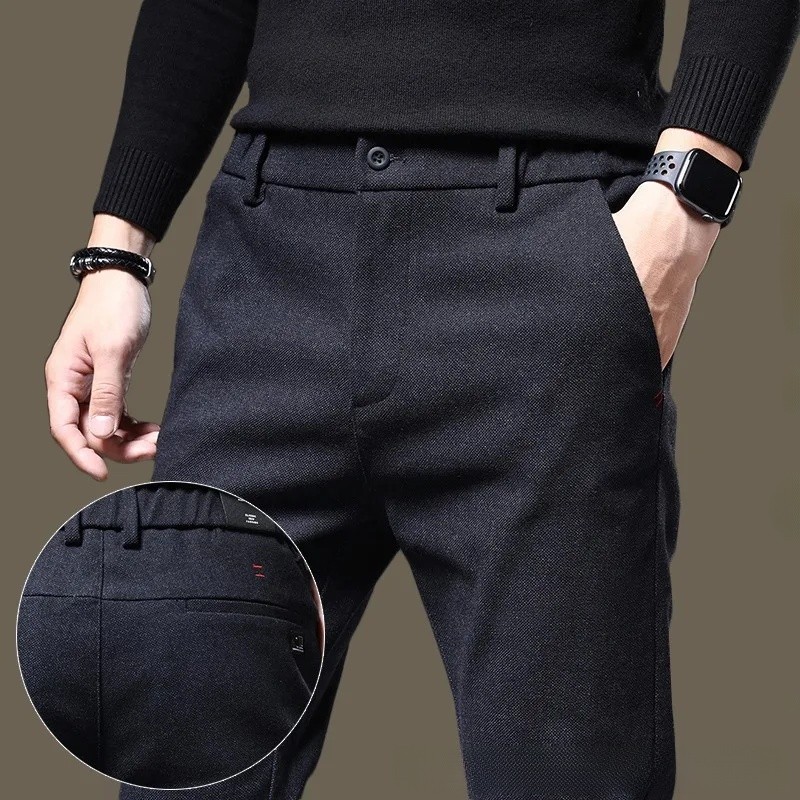 กางเกงหนาผู้ชาย สำหรับฤดูใบไม้ร่วงและหนาว แบบแฟชั่นขาตรง สบายสวมใส่