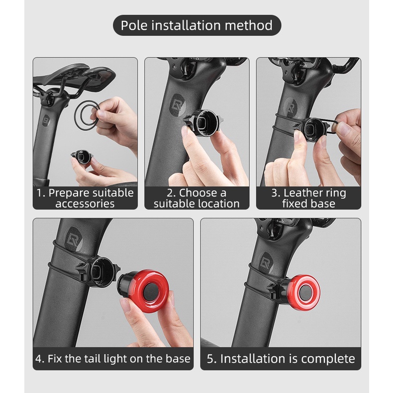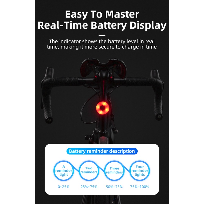 ROCKBROS LED สมาร์ทไฟเบรกกันน้ำอัพเกรดไฟท้ายชาร์จจักรยานอุปกรณ์เสริม