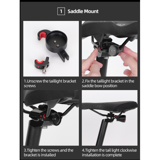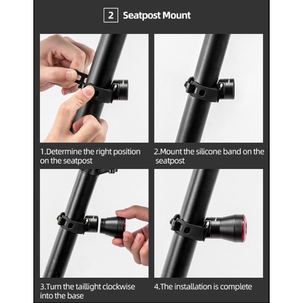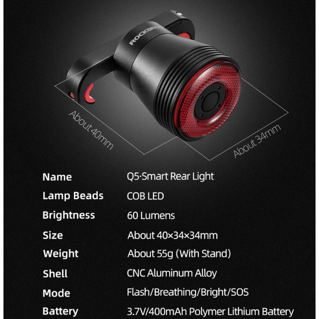 【TH Delivery】ROCKBROS ipx 6 จักรยานกันน้ำไฟ LED ไฟท้ายพร้อมเบรกรับประกันแสงหลายโหมดไฟขี่