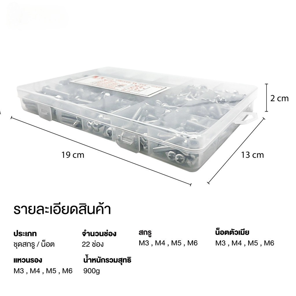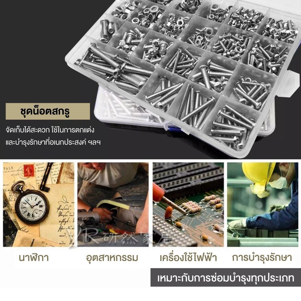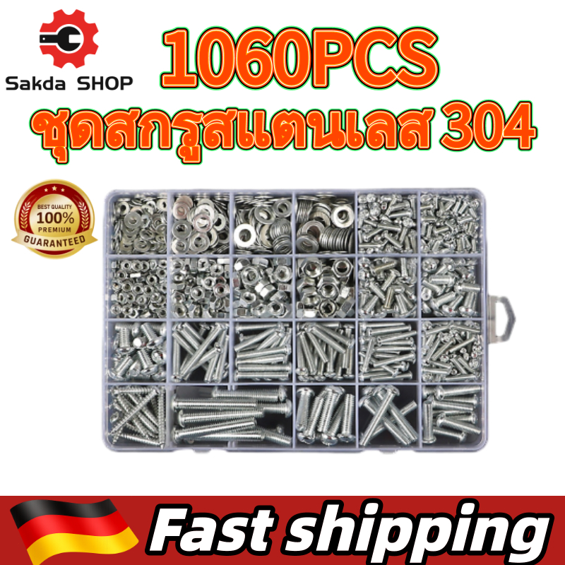 1060ชิ้น ชุดสกรูสแตนเลส 304 ชุดสกร ูอเนกประสงค์ ขนาด M3 M4 M5 สกรู 6 น็อตตัวผู้ น็อตตัวเมีย แหวนรองพร้อมกล่องพลาสติกแบ่งช
