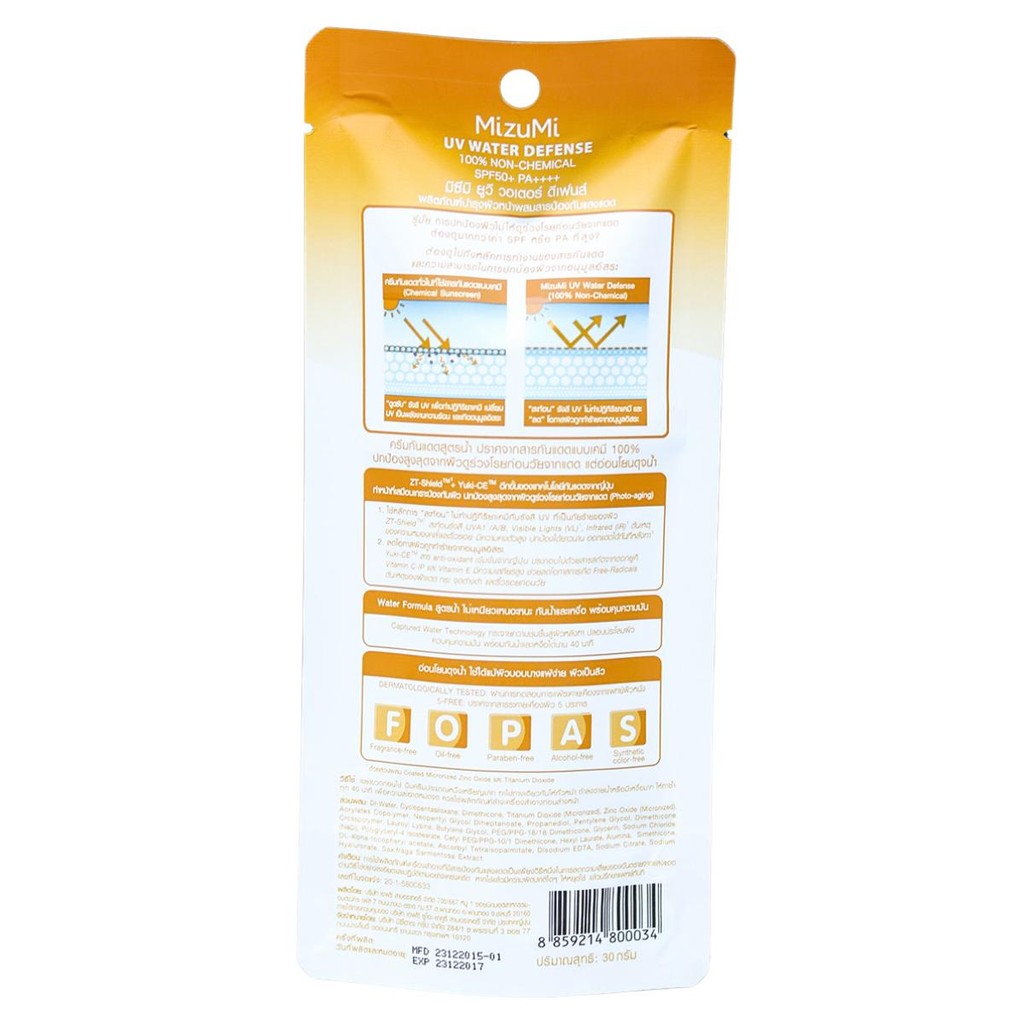 กันแดดมิซึมิ ดีเฟนส์ โปร สูตรกันน้ำ Mizumi Sunscreen SPF50+ PA++++ 8 กรัม