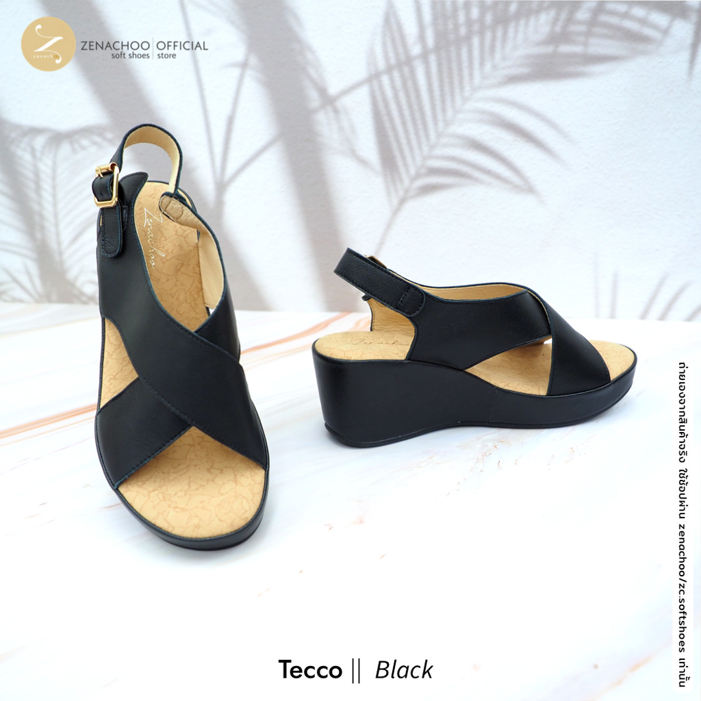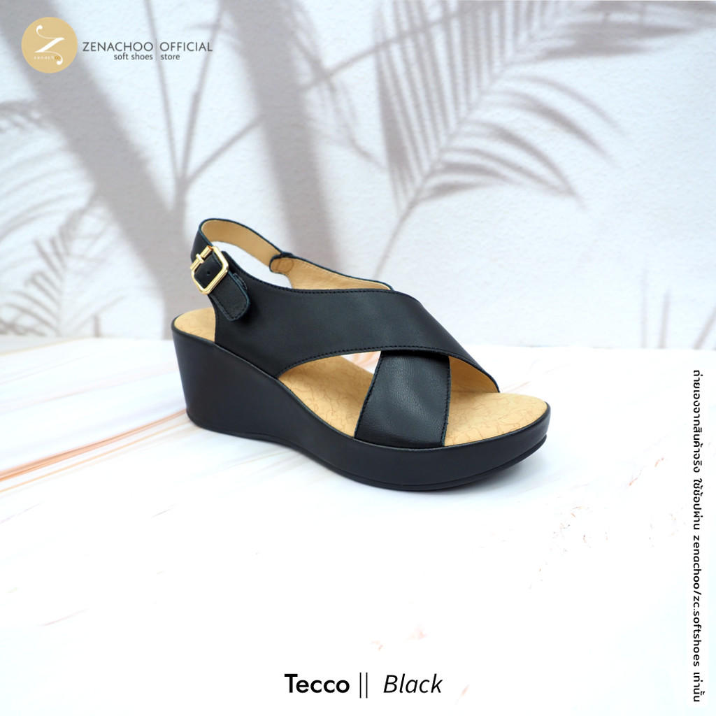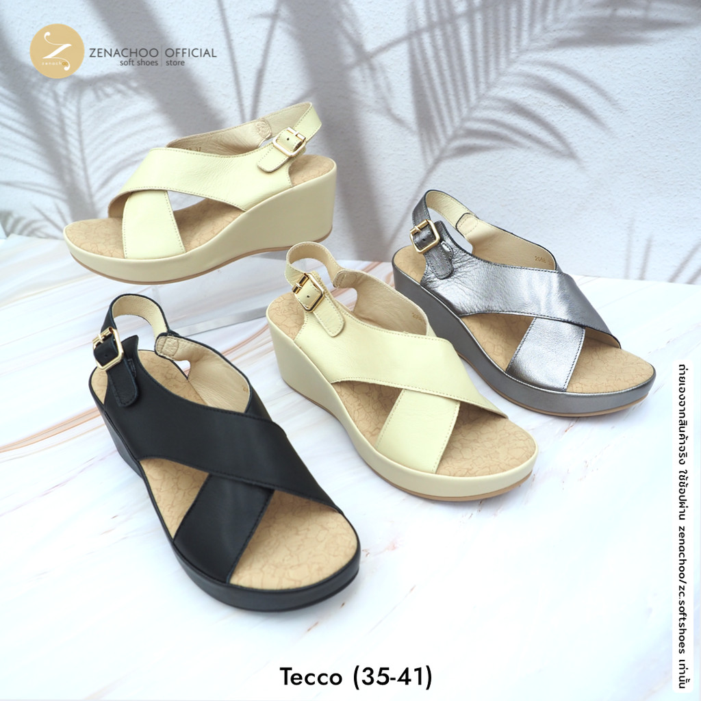 ทรงปกติ เปลี่ยนไซส์ได้-ไม่รับคืน Zenachoo รองเท้าสุขภาพ รุ่น Tecco สูง 2.5 นิ้ว ส้นเตารีด หนังแท้ พื้นนิ่มมาก