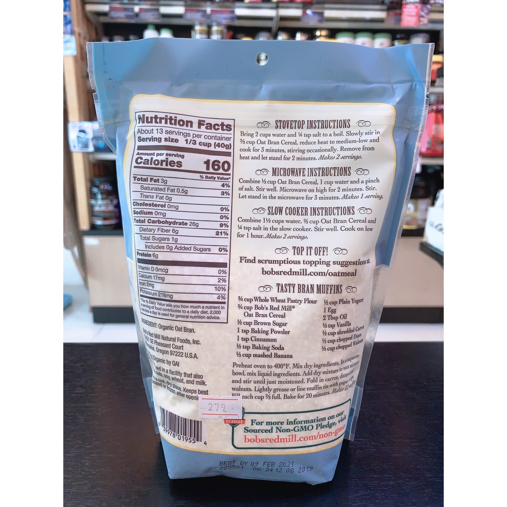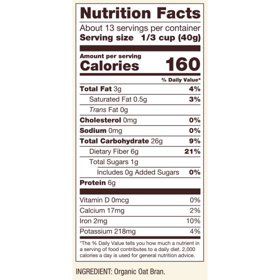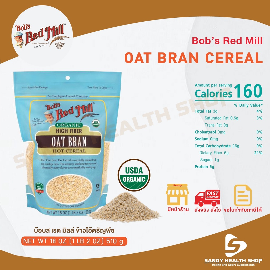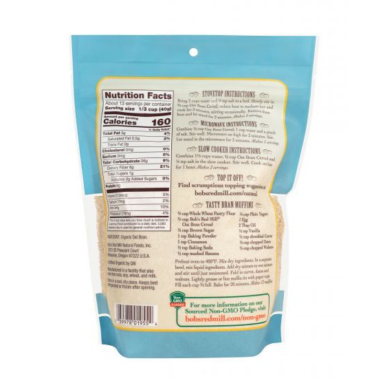 Bob red mil Organic Oat Bran Cereal 18 OZ รำข้าวออร์แกนิค เนื้อเนียน ไฟเบอร์สูง โปรตีนสูง