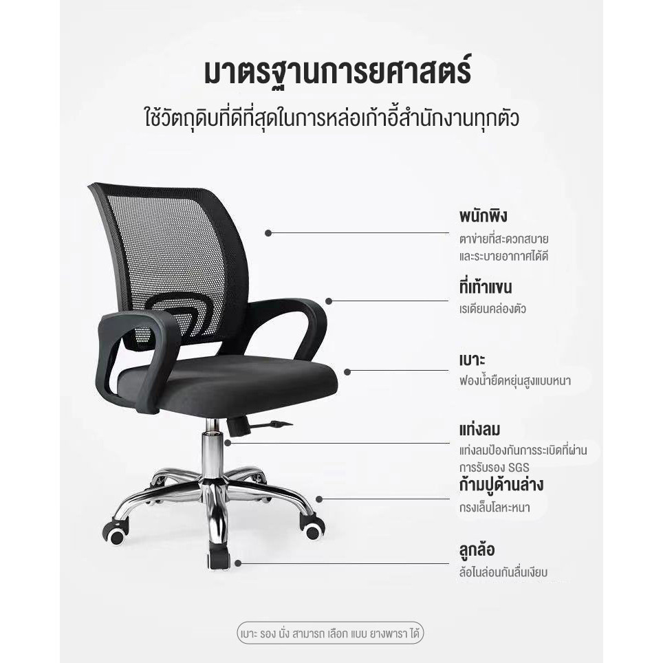ราคาโรงงาน เก ้าอี้ทํางาน เก้าอี้สำนักงาน ปรับระดับ Office Chair ขาเหล็ก พนักพิงหลัง นั่งนุ่ม