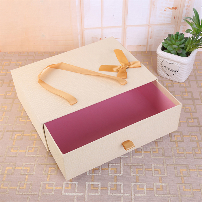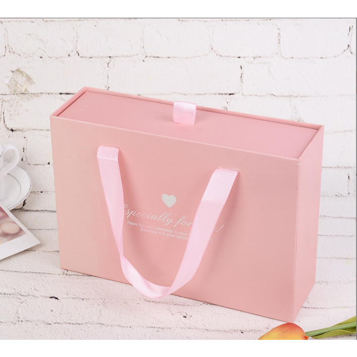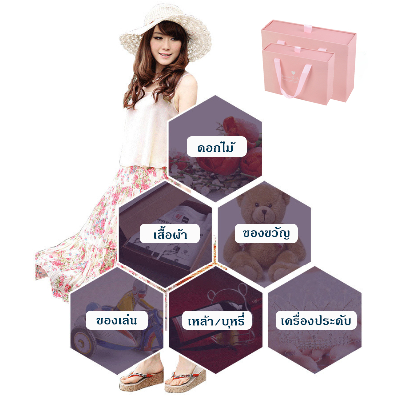 (🇹🇭พร้อมส่ง)กล่องของขวัญ แบบลิ้นชัก ผูกโบว์ กล่องใส่ของขวัญ สีชมพู ส่งไว