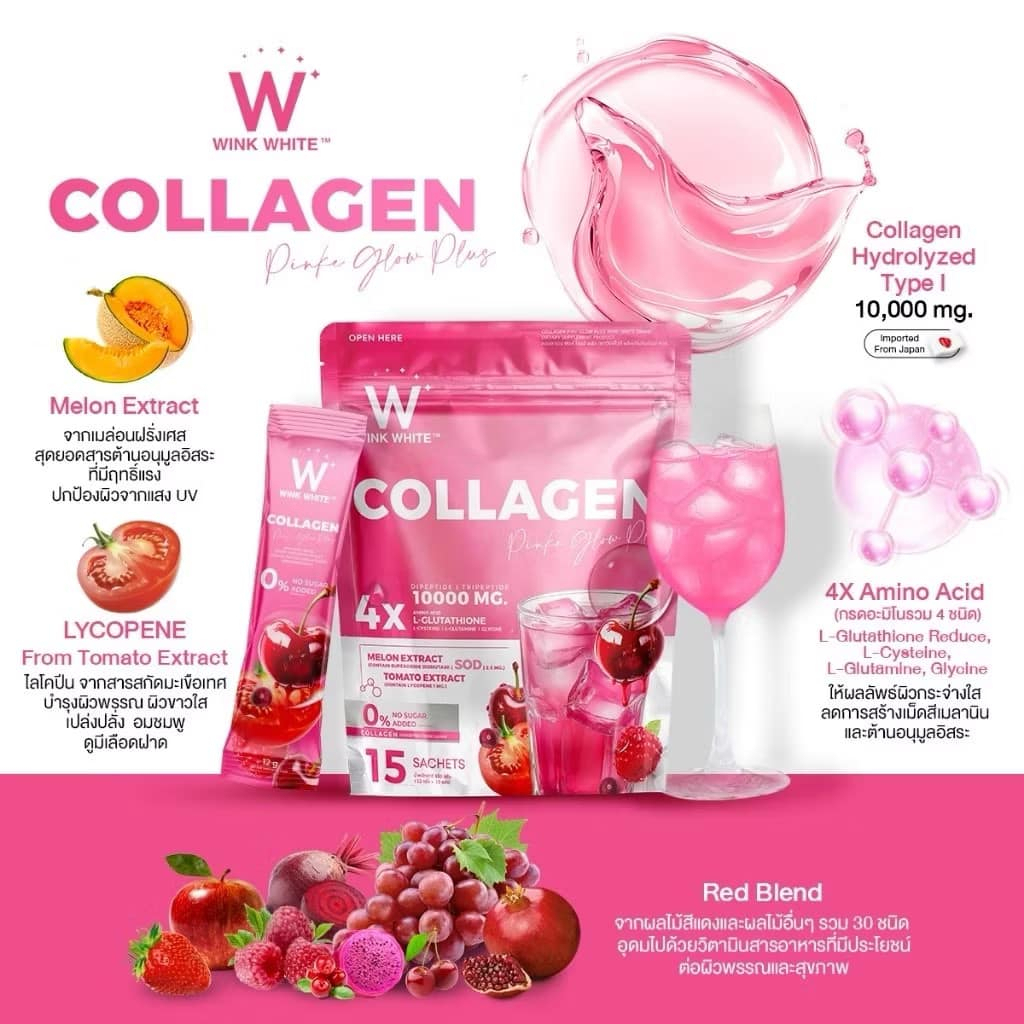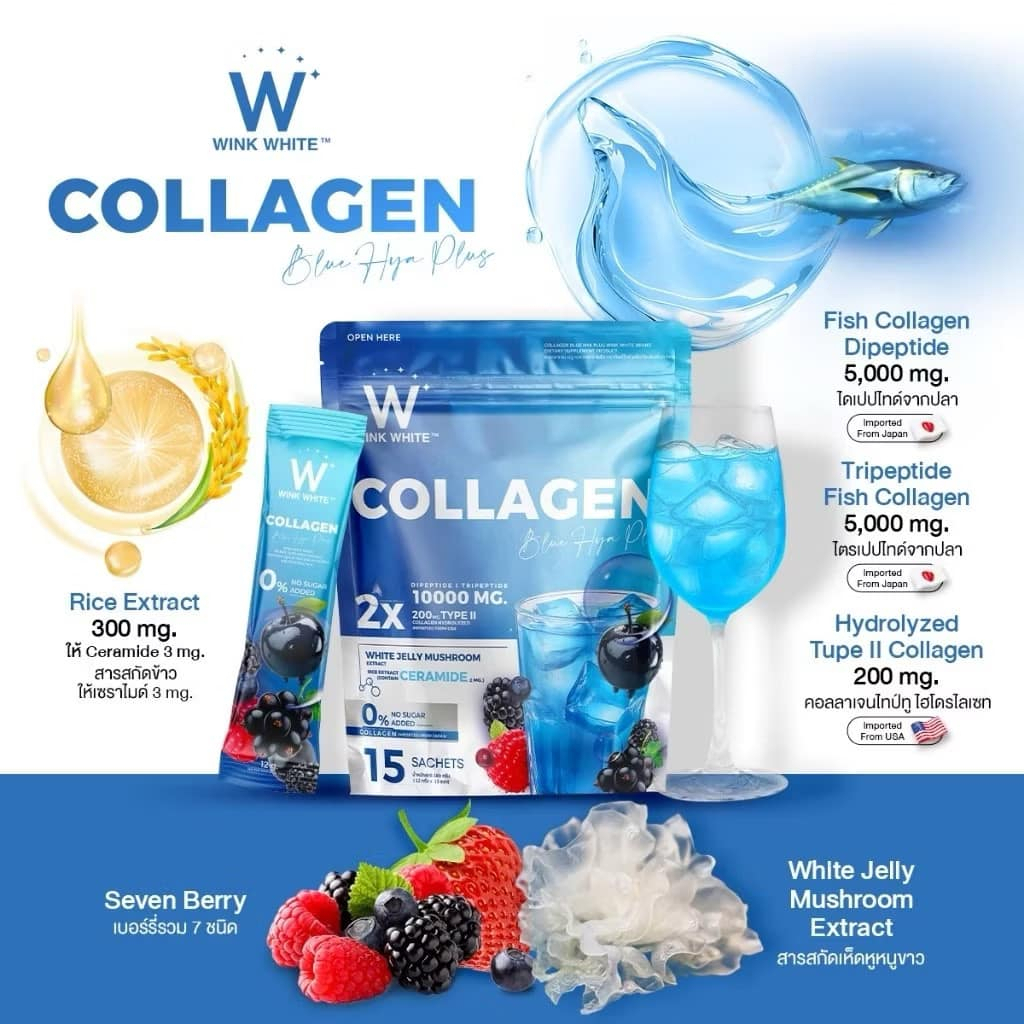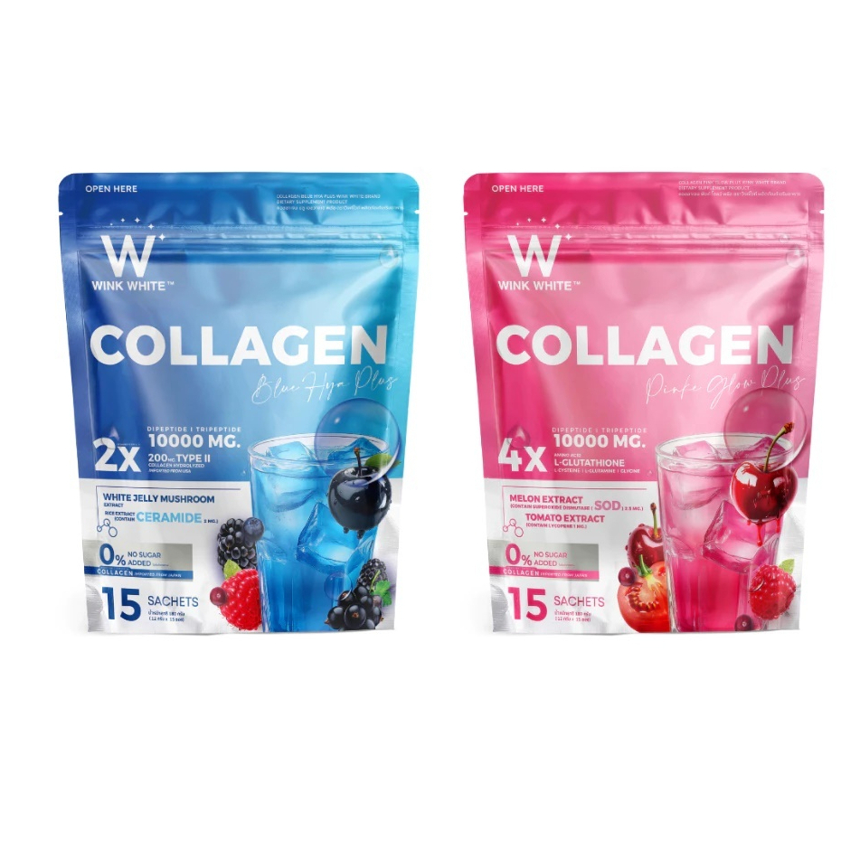 (1ห่อ/15ซอง) วิ้งไวท์ คอลลาเจน Blue HYA Plus (ห่อฟ้า) / Pink Glow Plus (ห่อชมพู)