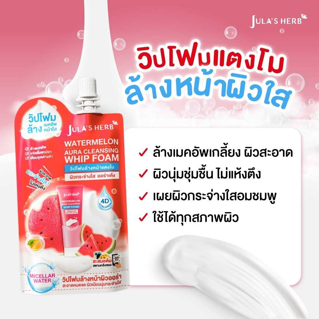 (1 ซอง) โฟมล้างหน้าแตงโมสูตรวิปโฟม Jula's Herb Watermelon Aura Cleansing Whip Foam