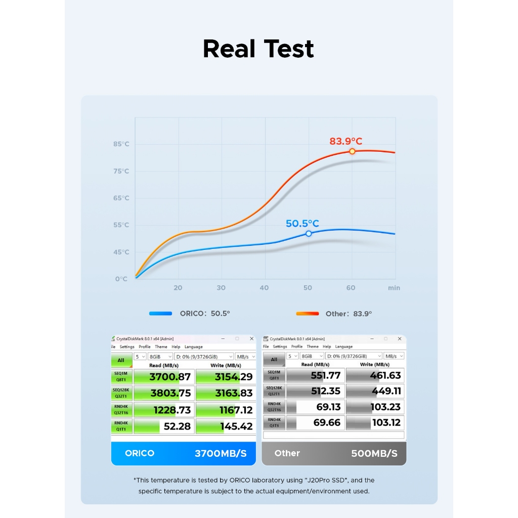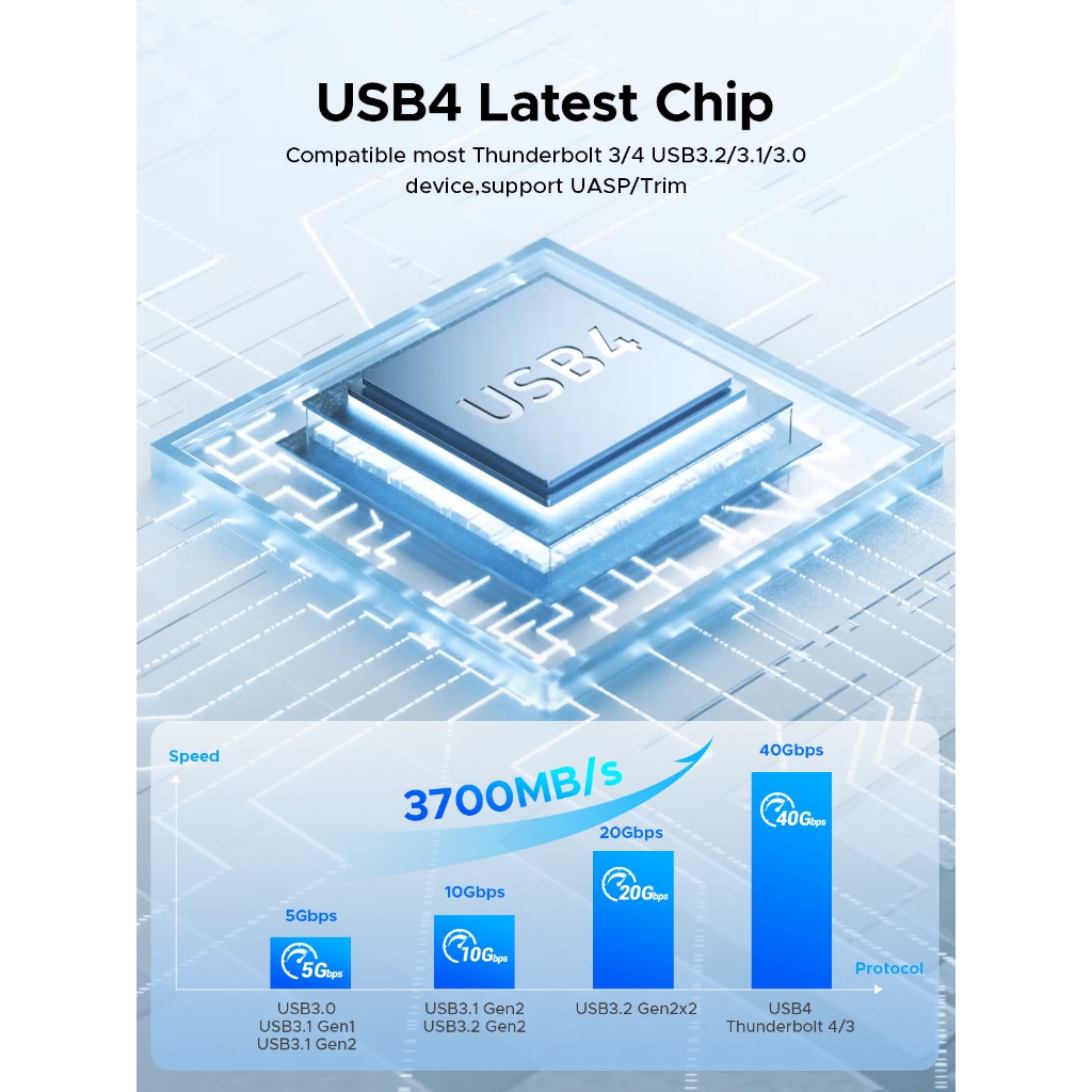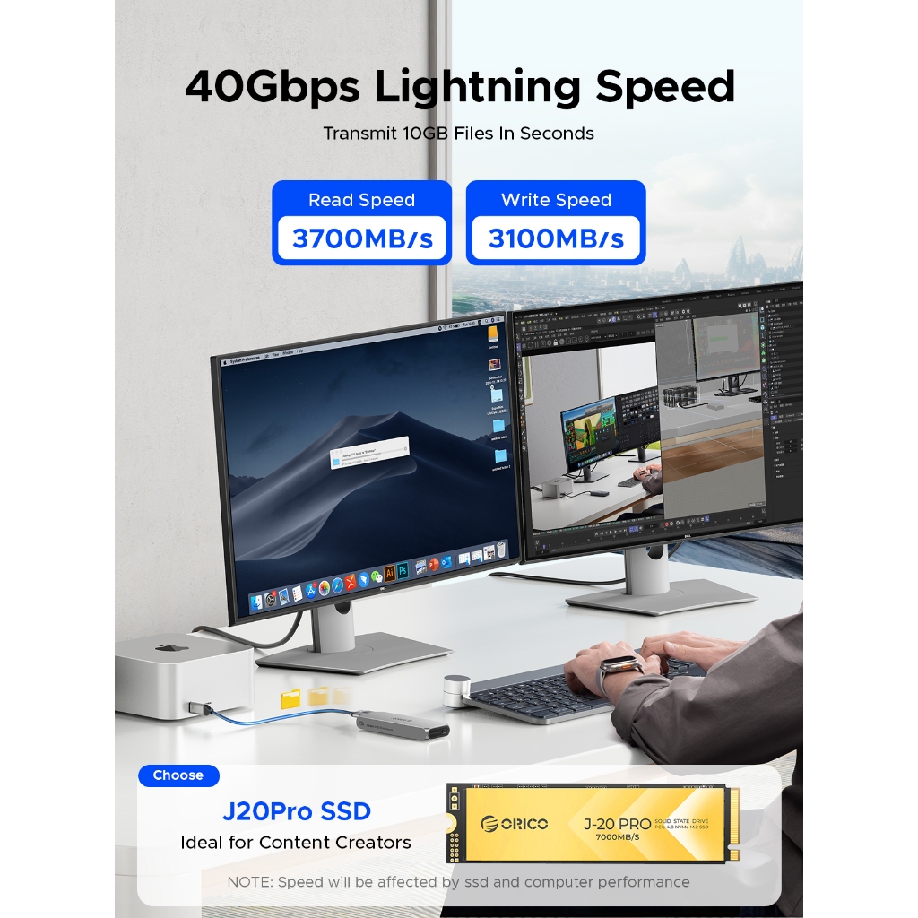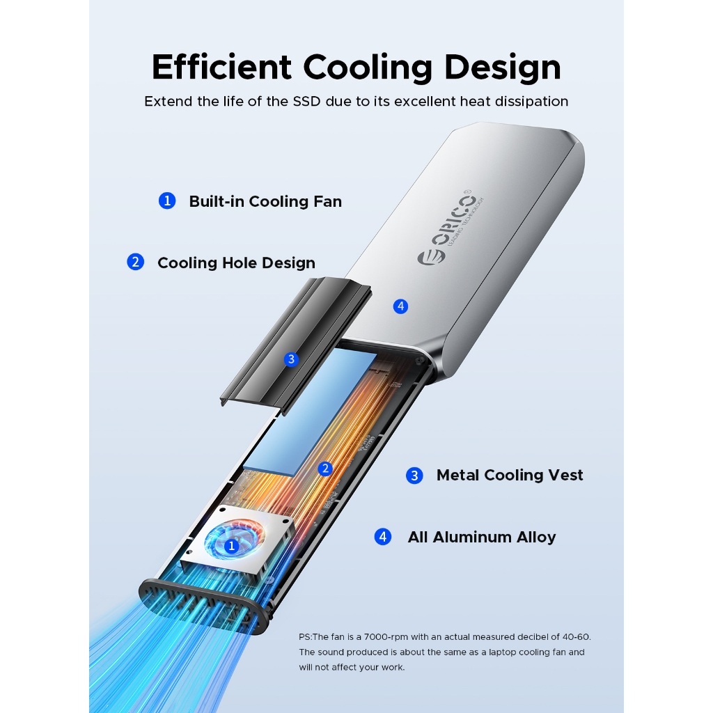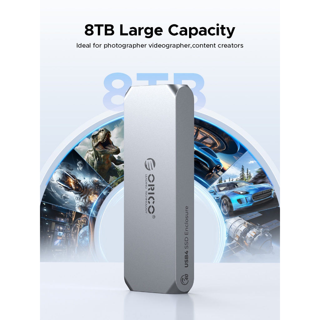 Orico USB4 M.2 NVME SSD Enclosure 8TB อลูมิเนียมประเภท C พัดลมในตัวสําหรับ Thunderbolt3/4 (COM2)