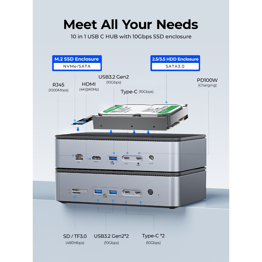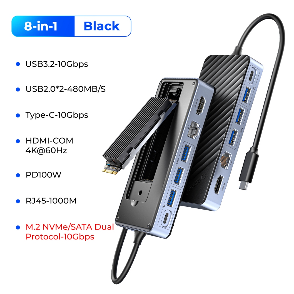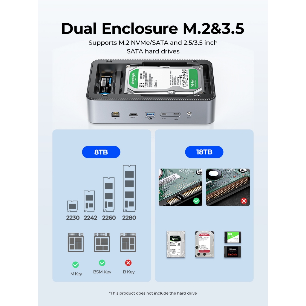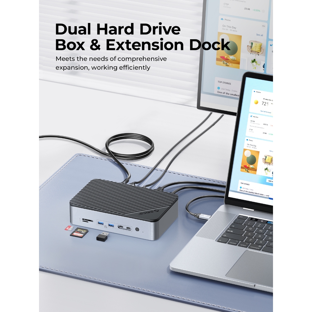 Orico Docking Station พร้อม Dual M.2 NVME SSD Case 3.5 กล่องใส่ฮาร์ดไดรฟ์ HDMI PD100W (D35M2)