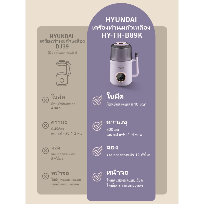 HYUNDAI เครื่องทำน้ำนมถั่วเหลือง เครื่องปั่นพลังสูง, เครื่องทำน้ำนมถั่วเหลืองอเนกประสงค์, เครื่องทำน้ำนมถั่วและธัญพืช