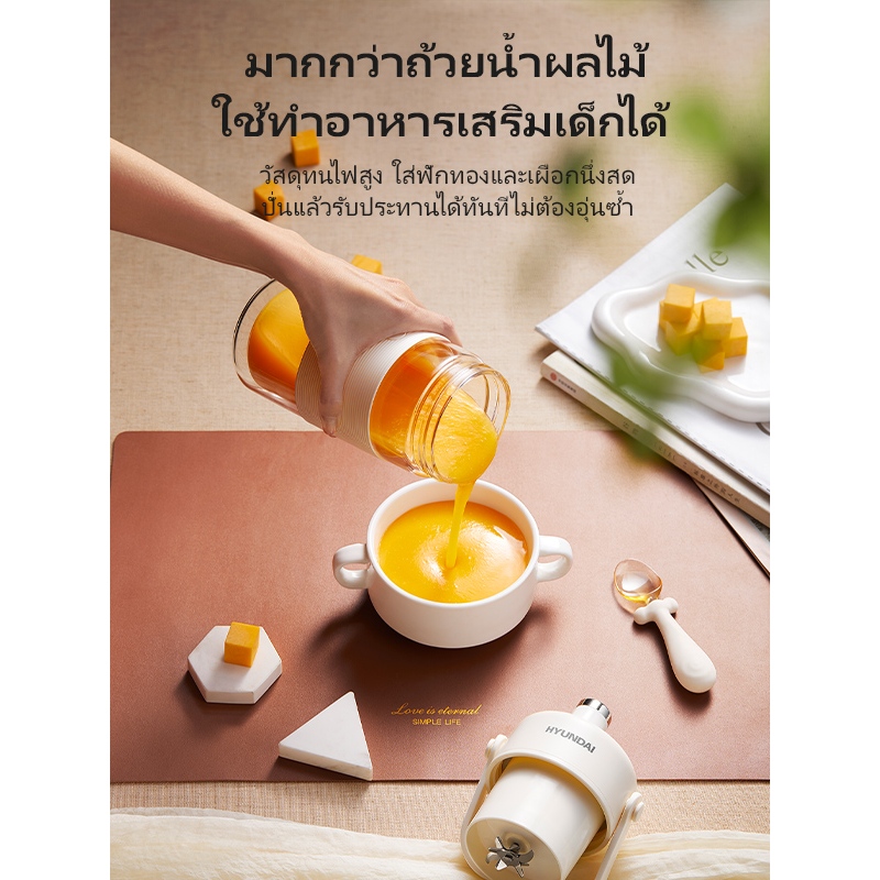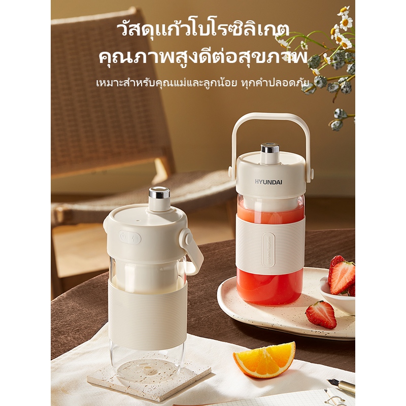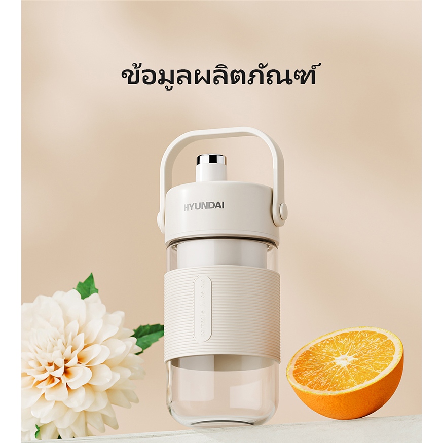 HYUNDAI เครื่องปั่นน้ำผลไม้ เครื่องปั่นน้ำผลไม้พกพา ไร้สายแบบพกพา ความจุ 400mL มัลติฟังก์ชั่น TypeC แก้วปั่นผลไม้แบบพกพา