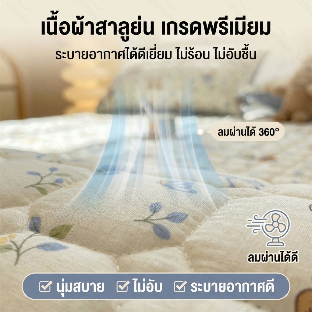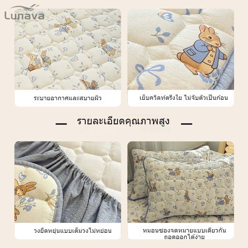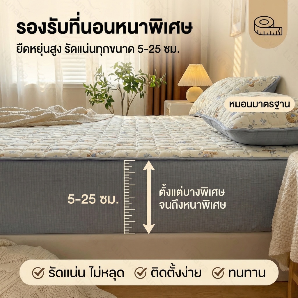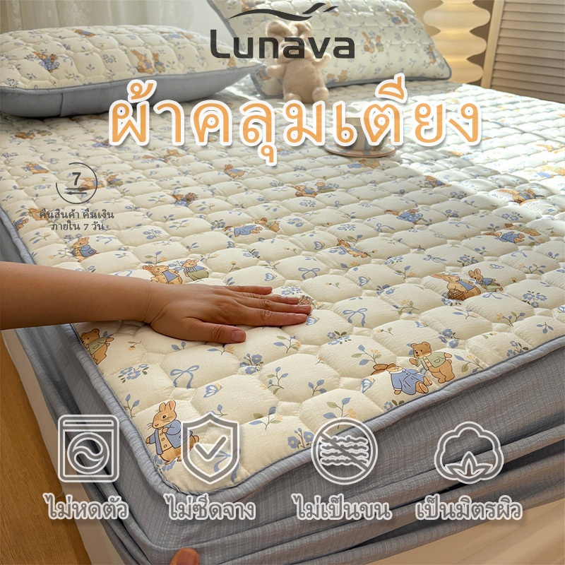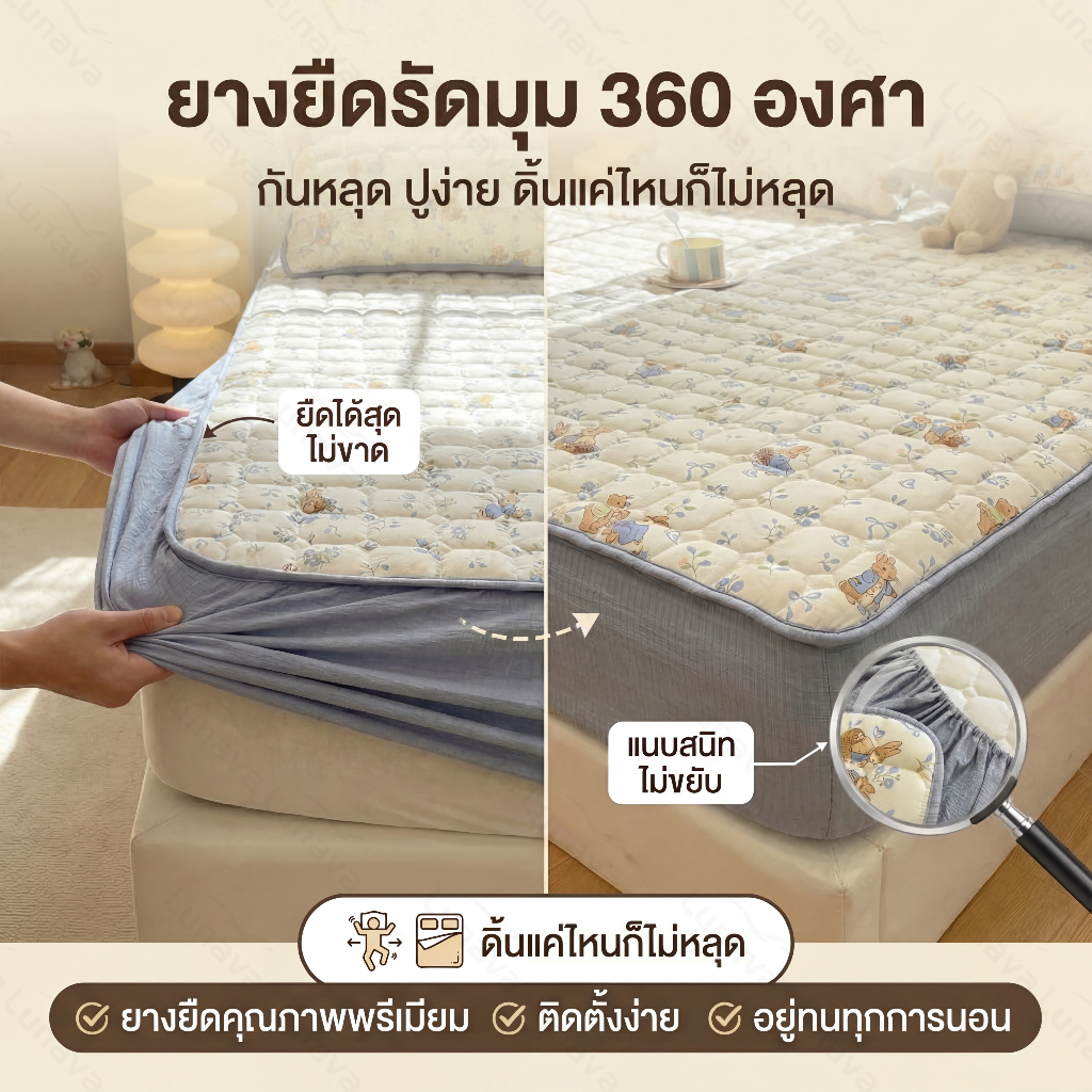 LUNAVA ผ้าปูที่นอน6ฟุต ผ้าปูที่นอน ที่นอนมีขอบ ผ้าหนาแน่น ซักเครื่องได้ไม่เสียรูปทรง ใส่ได้ทั้งลุกนุ่ม