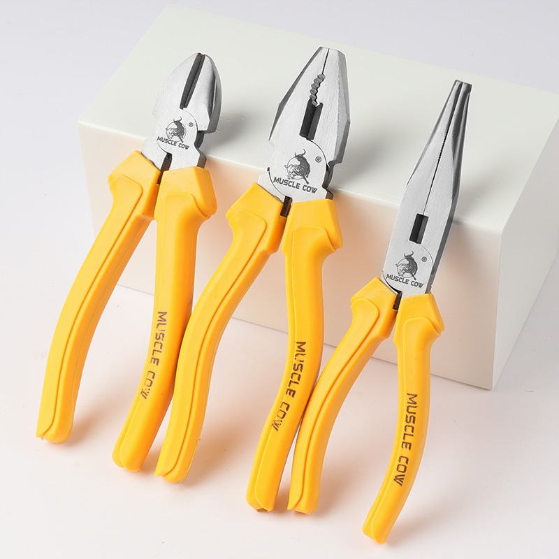 MUSCLE COW ขายร้อนในสต็อก ชุด 6 ชิ้น คีมมัลติฟังก์ชั่น 6/8 นิ้ว มือจับสีเหลือง คีมจมูกแหลม คีมตัดลวด