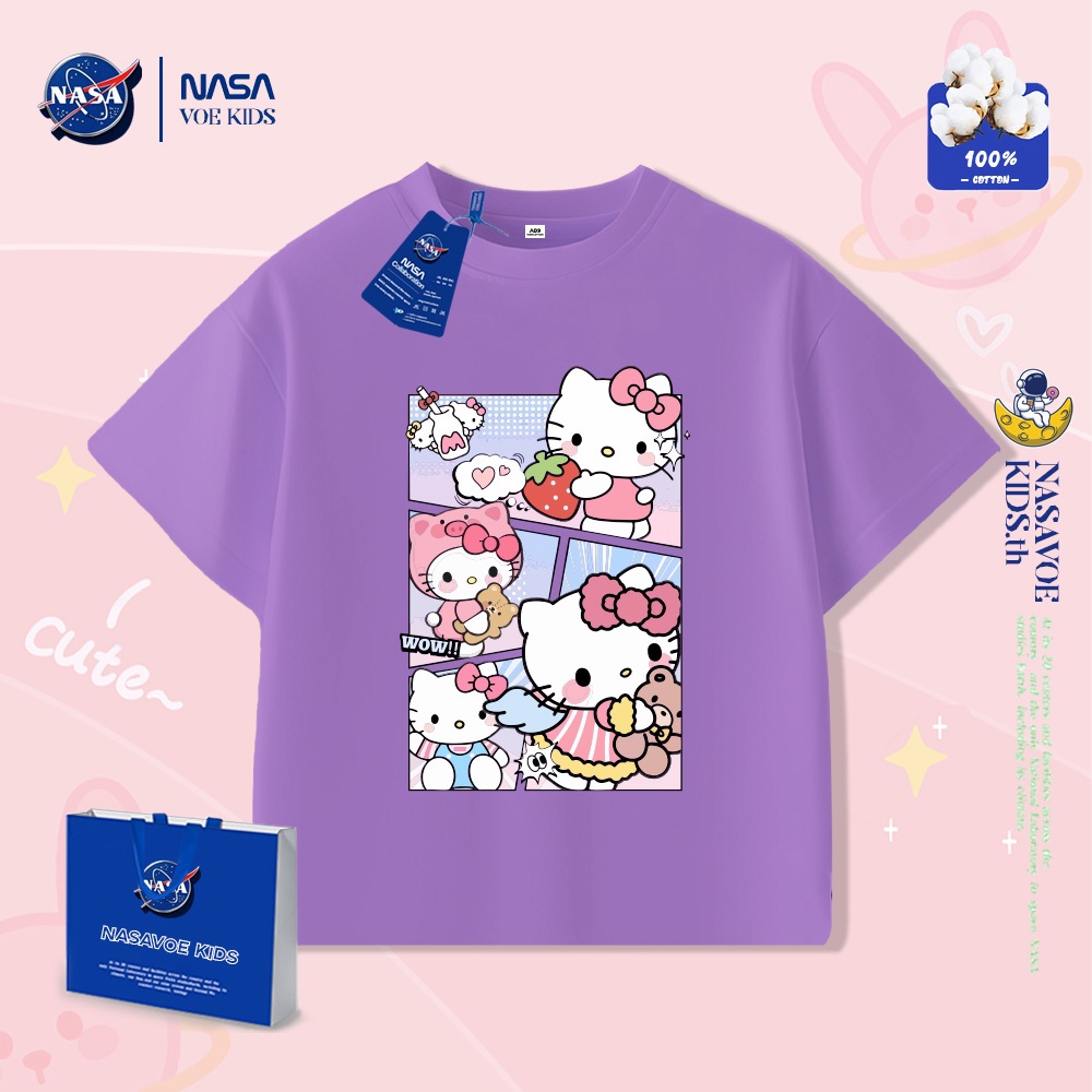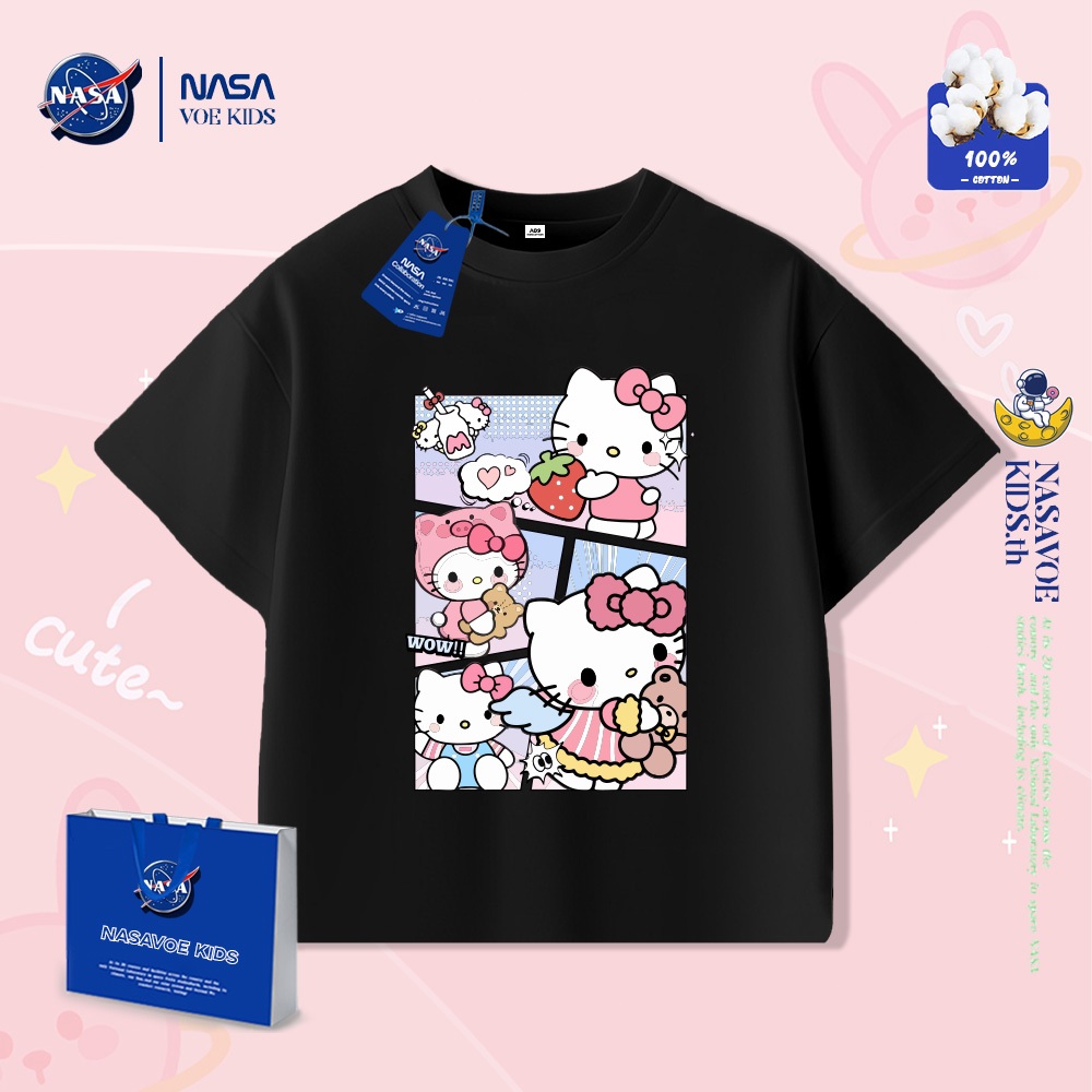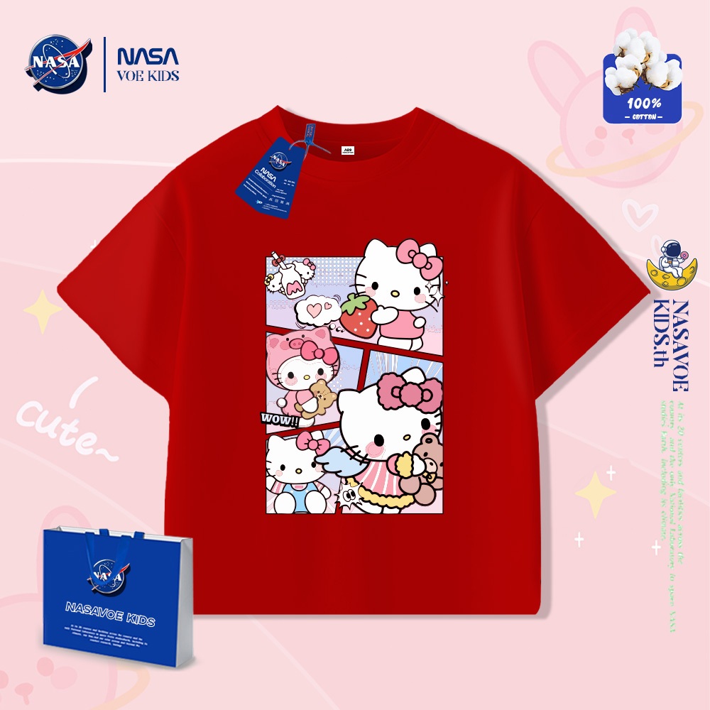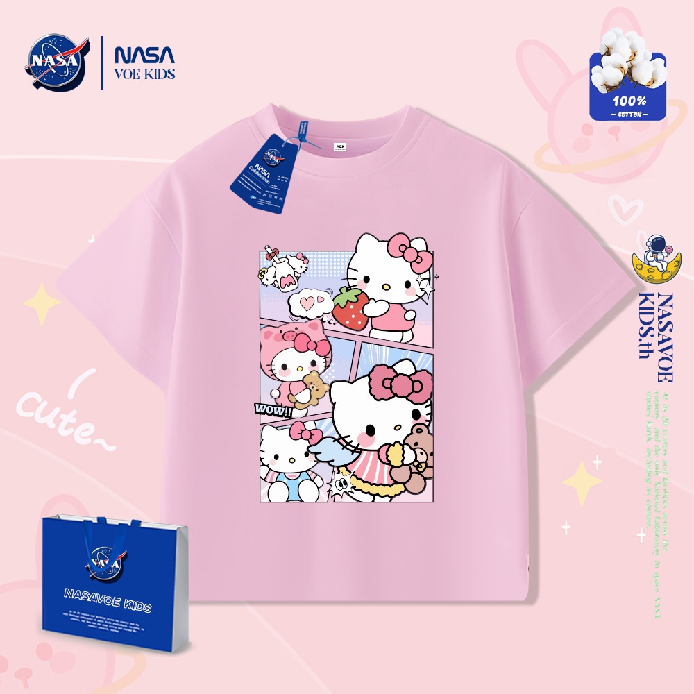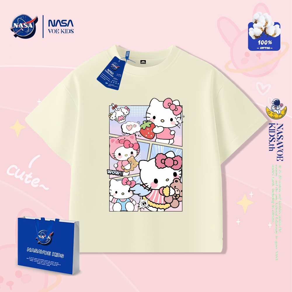 พร้อมส่งภายใน 24 ชม. NASAVOEBABY เด็กแขนสั้น kettycat หญิงแขนสั้นผ้าฝ้ายแท้ 100%แขนสั้นการ์ตูนน่ารักสบายๆสไตล์ญี่ปุ่น