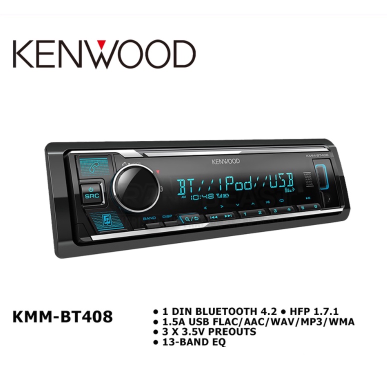 KENWOOD KMM-BT408 เครื่องเสียงรถ วิทยุติดรถยนต์ 1DIN / BLUETOOTH / USB / AUX (ไม่เล่นแผ่น CD)
