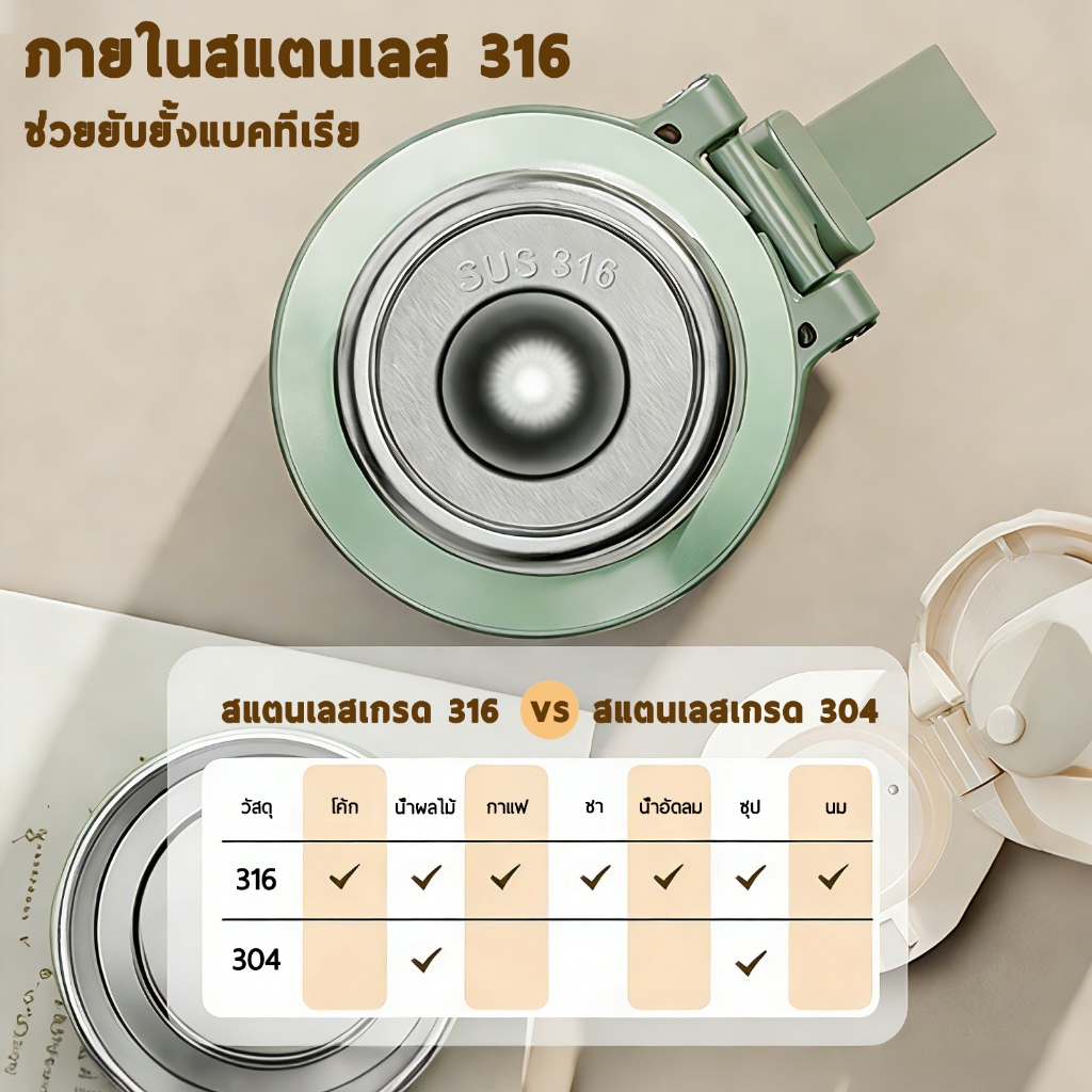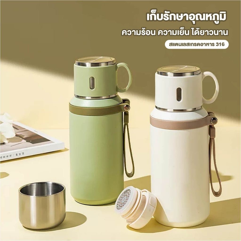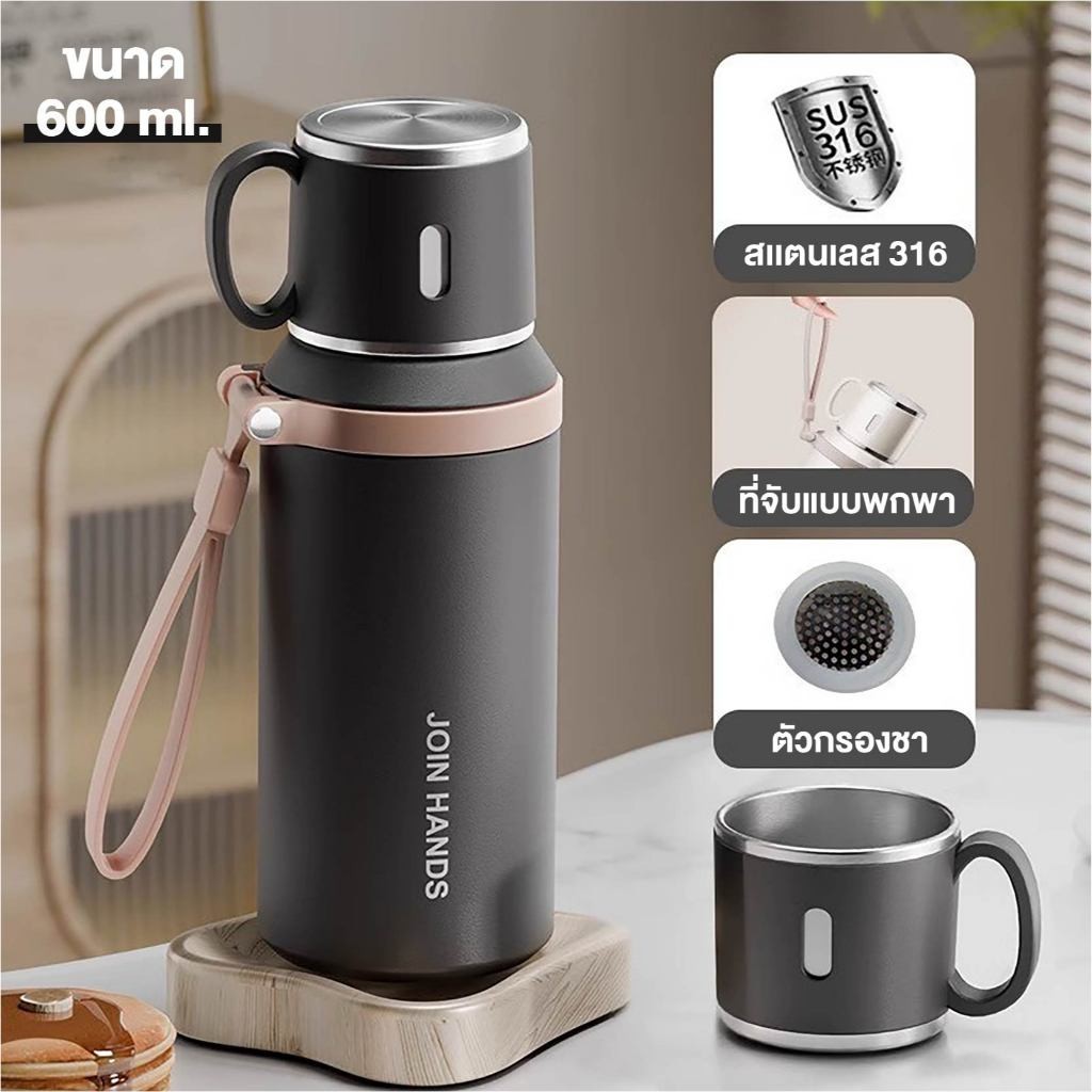 แก้วเก็บความเย็น-ร้อน 600ml สแตนเลส 316 กันรั่ว ซีลซิลิโคนแน่น มีฝาปิด พกพาสะดวก
