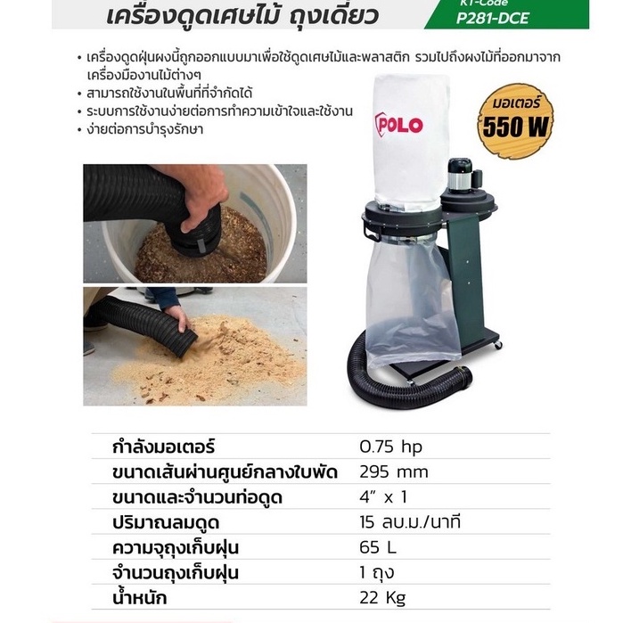 POLO เครื่องเก็บฝุ่นงานไม้ DC-E 550 วัตต์(AW) เก็บฝุ่น เครื่องเก็บฝุ่น