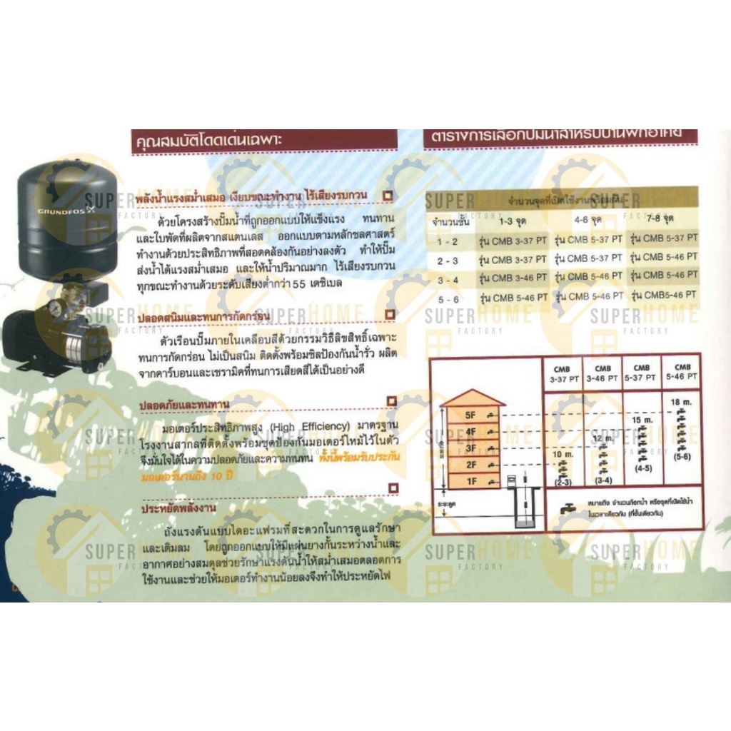 GRUNDFOS ปั๊มน้ำ CMB-PT ปั๊มน้ำอัตโนมัติ ปั้มน้ำ CMB3-37PT CMB3-46PT CMB5-37PT CMB5-46PT ปั๊มน้ำ ปั้มน้ำ