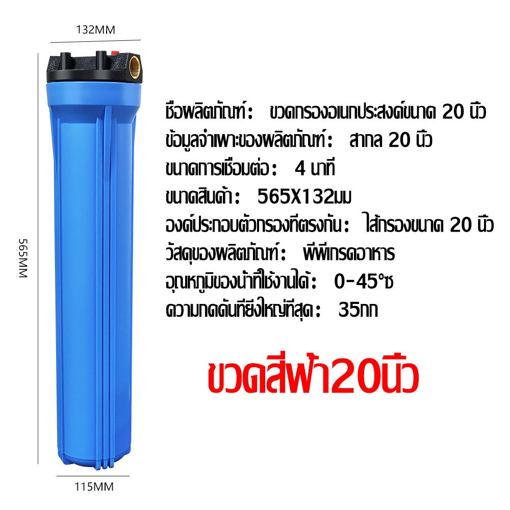 กระบอกกรองน้ำ20นิ้ว เกลียว4หุน กระบอกทึบ สีฟ้า เครื่องกรองน้ำ