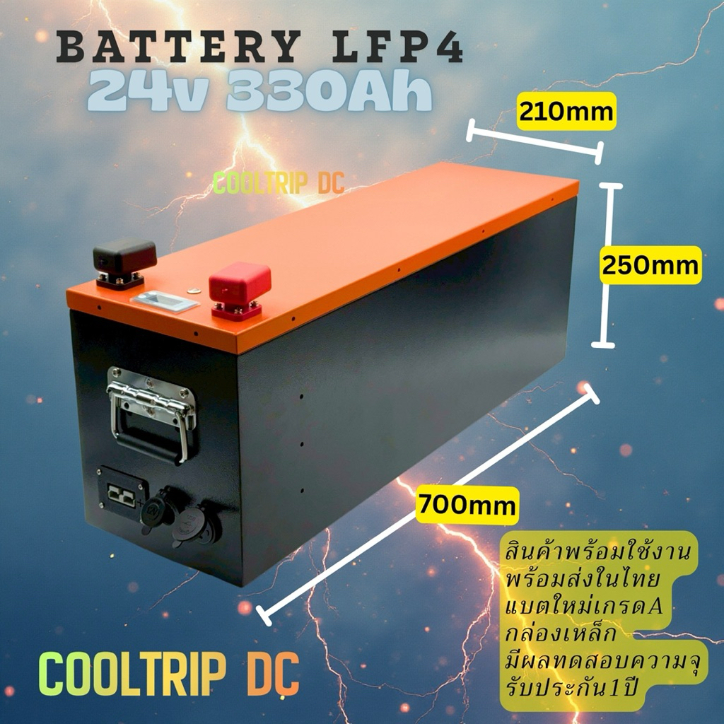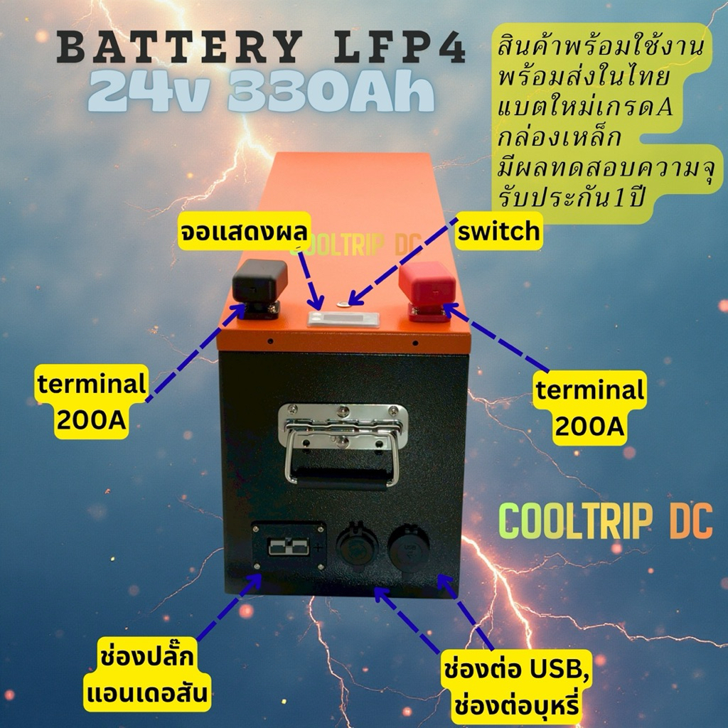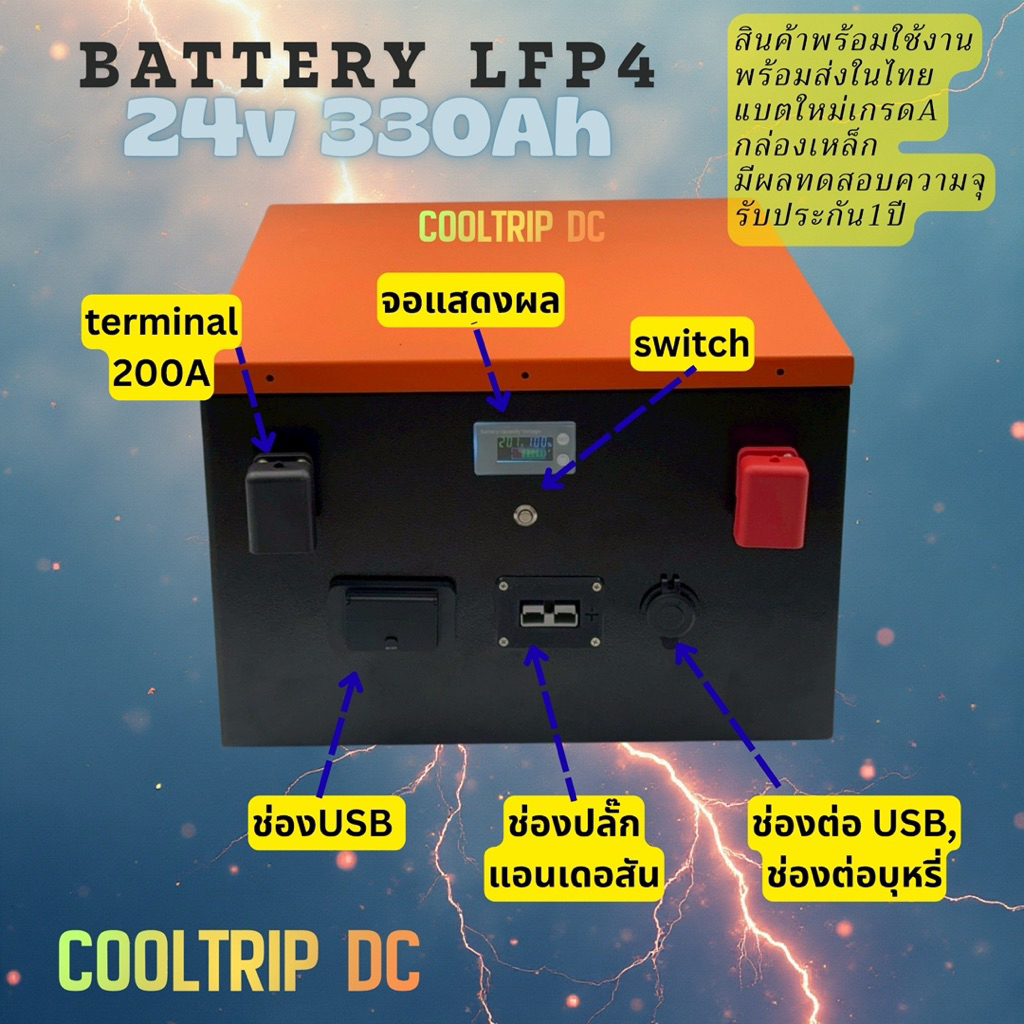แบตเตอรี่ลิเธียม(LFP4) 24V 330Ah smart BMS พร้อมใช้งาน มีช่องต่อUSB A,C ,แอนเดอร์สัน,ช่องต่อบุหรี่