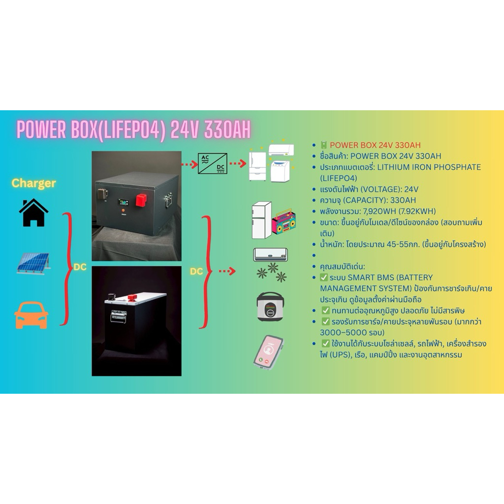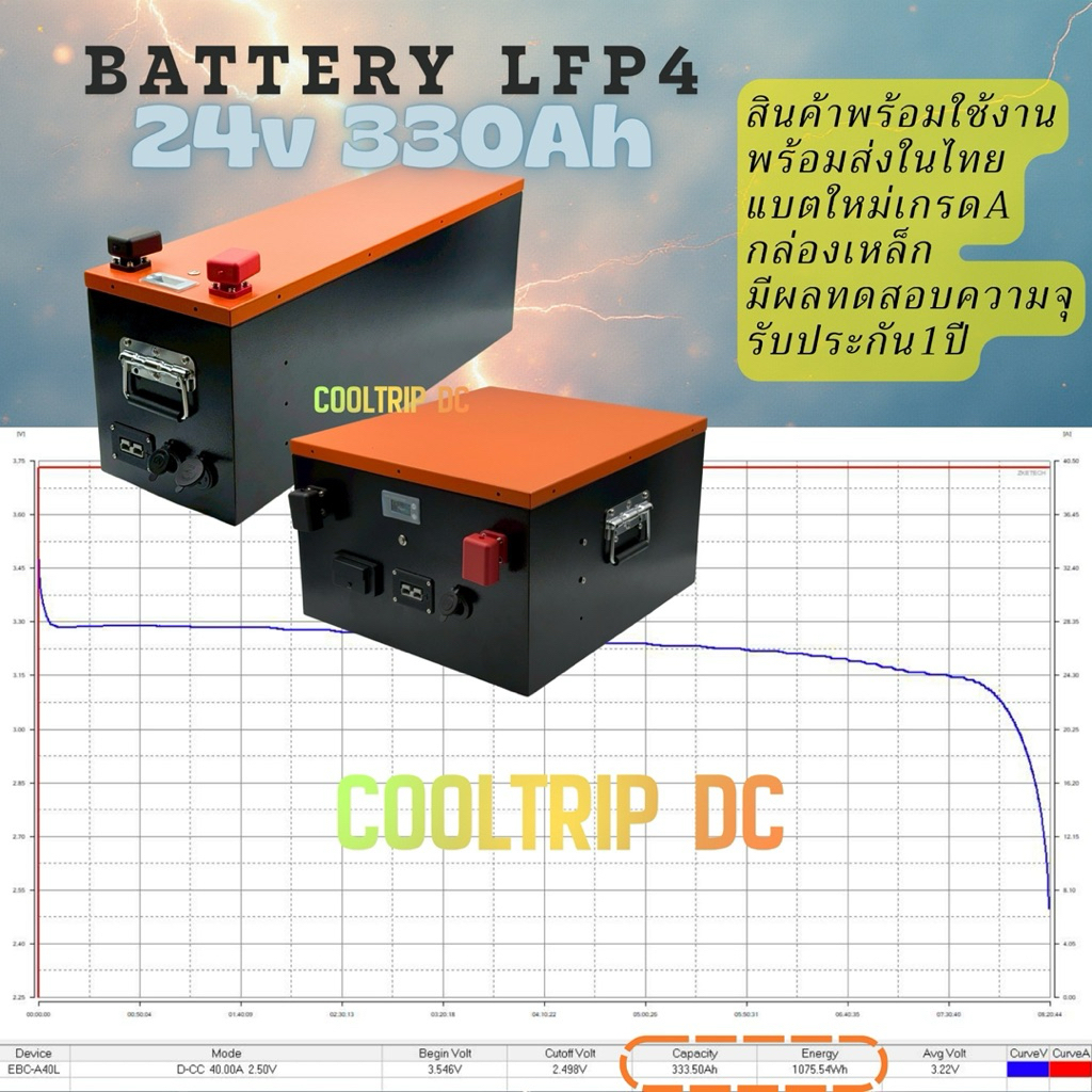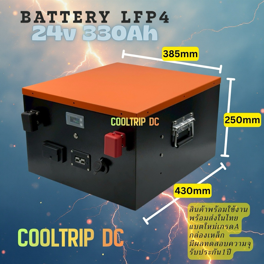 แบตเตอรี่ลิเธียม(LFP4) 24V 330Ah smart BMS พร้อมใช้งาน มีช่องต่อUSB A,C ,แอนเดอร์สัน,ช่องต่อบุหรี่