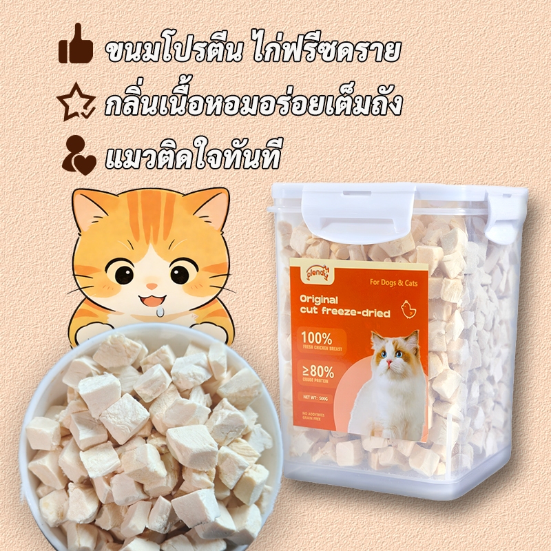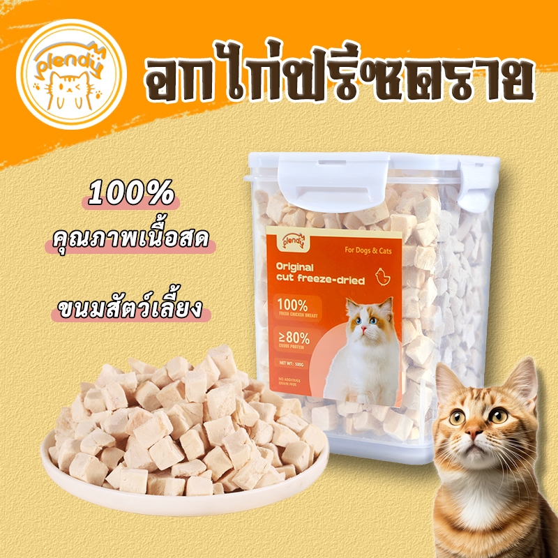 Plendy อกไก่ฟรีซดราย ฟรีซดราย 100% ขนมแมว 640g ขนมฟรีซดรายแมว ขนมสัตว์เลี้ยง อกไก่แมว Freeze Dried แมว