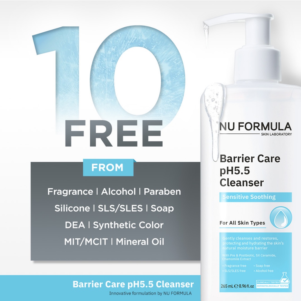 NU FORMULA Barrier Care pH5.5 Cleanser 265ml เจลล้างหน้าสำหรับผิวแพ้ง่าย ปรับสมดุล เสริมผิวแข็งแรง