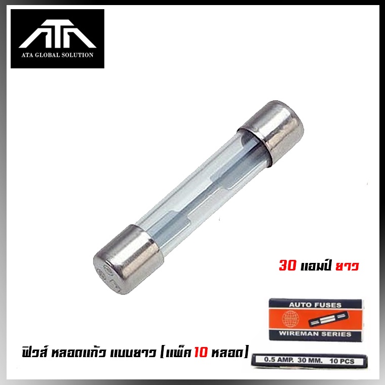 ฟิวส์ หลอดแก้ว แบบยาว (แพ็ค 10 หลอด) ใช้ในเครื่องเสียง วงจร อเล็กทรอนิคส์ ไฟฟ้า