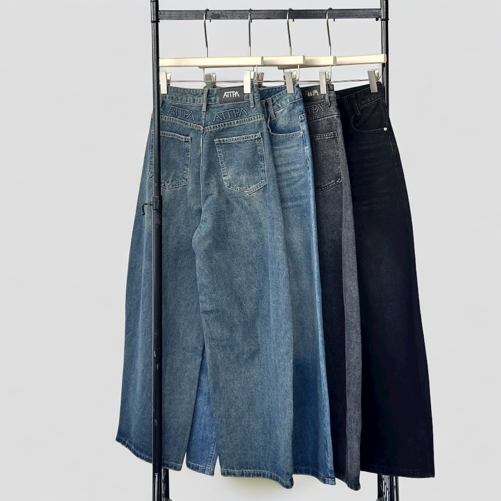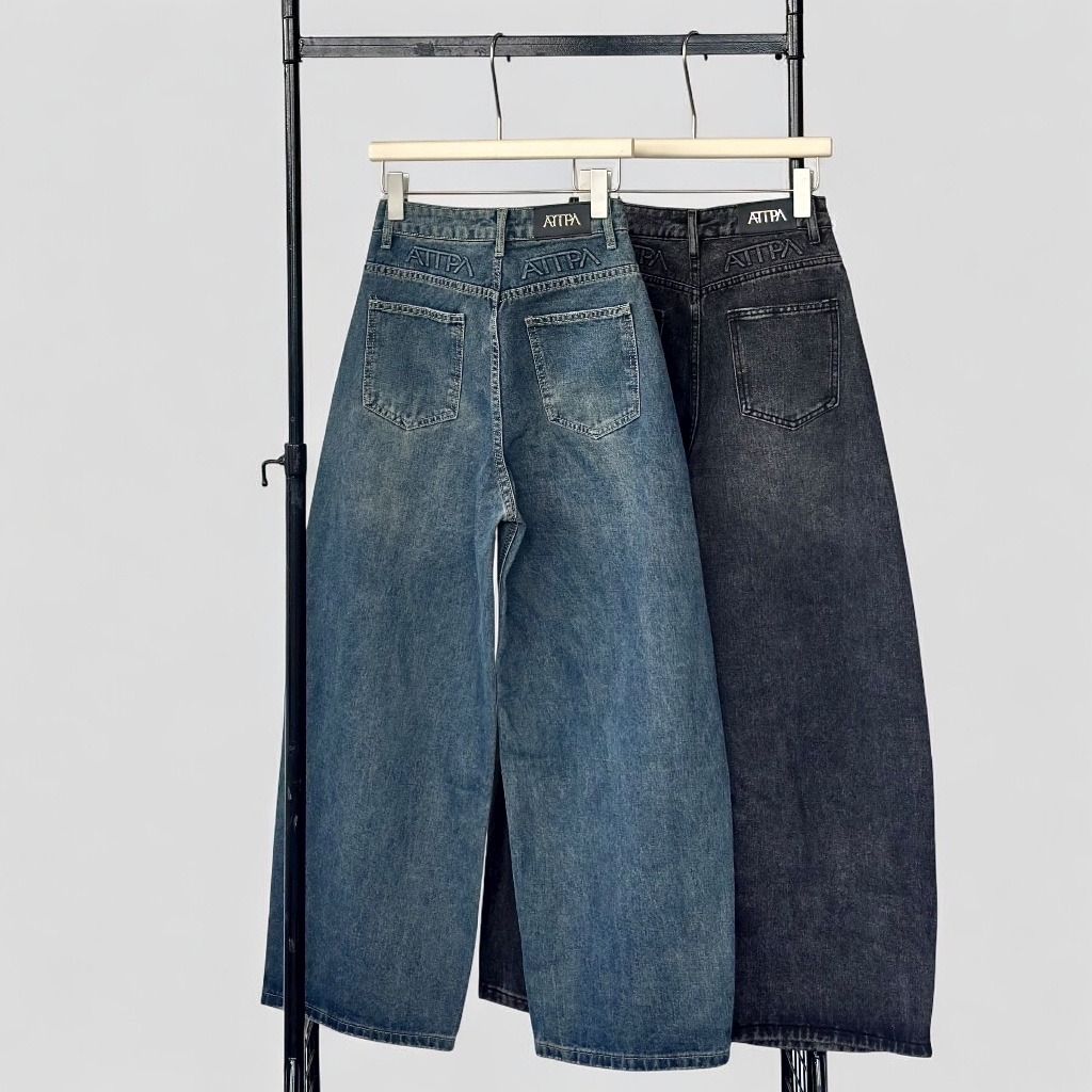 CELAR WIDE JEANS (#A037) กางเกงยีนส์ขายาว ทรงบาร์เรล ดีเทลปั้มนูน ATIPA