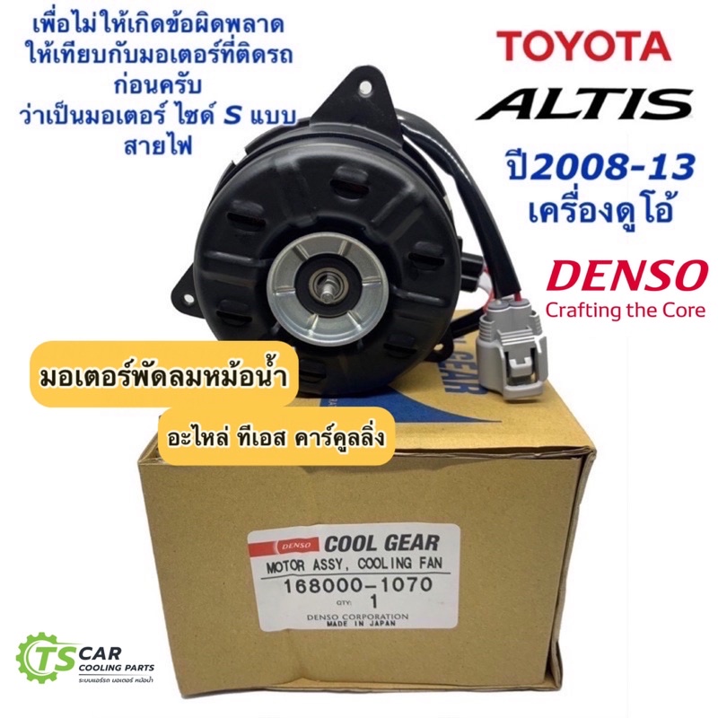 มอเตอร์พัดลม หม้อน้ำ อัลติส Altis ปี2008-13 Denso รุ่น2 (CoolGear 1070) Civic FD CRV คูลเกียร์ เดนโซ สายไฟ ไซด์ S