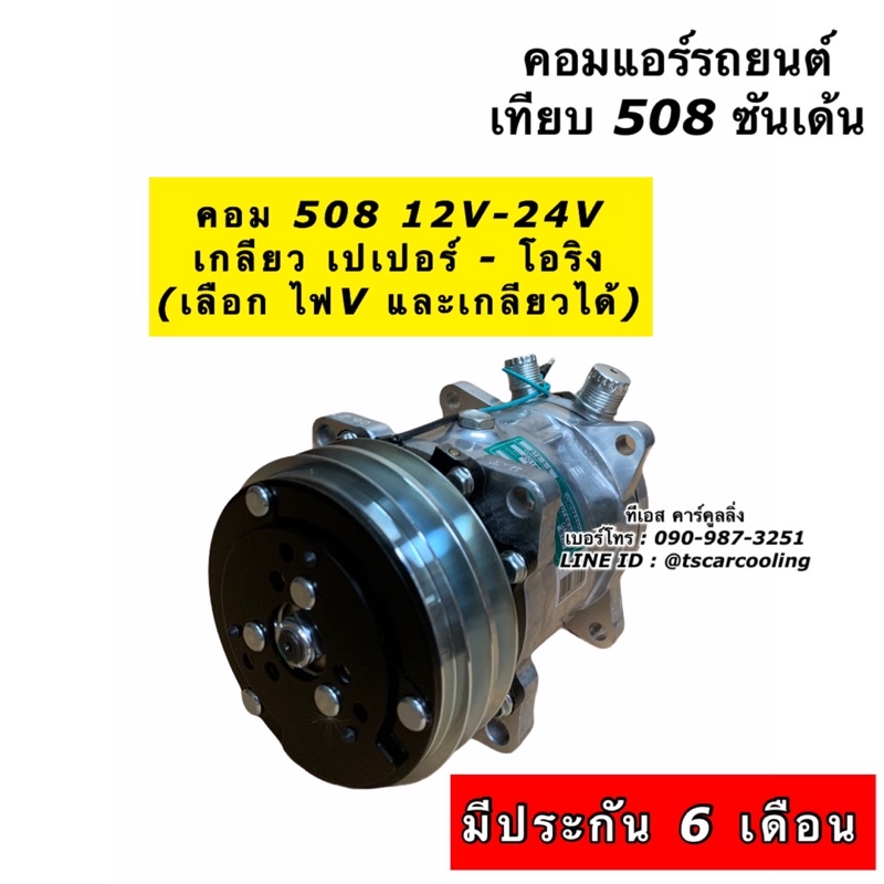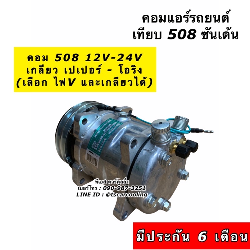 คอมแอร์ 508 เทียบมีประกัน Sanden 508 2ร่อง เกลียว เปเปอร์ ไฟ12-24V (DTS) ซันเด้น คอมแอร์รถยนต์ น้ำยาแอร์ r134a ตู้แอร์