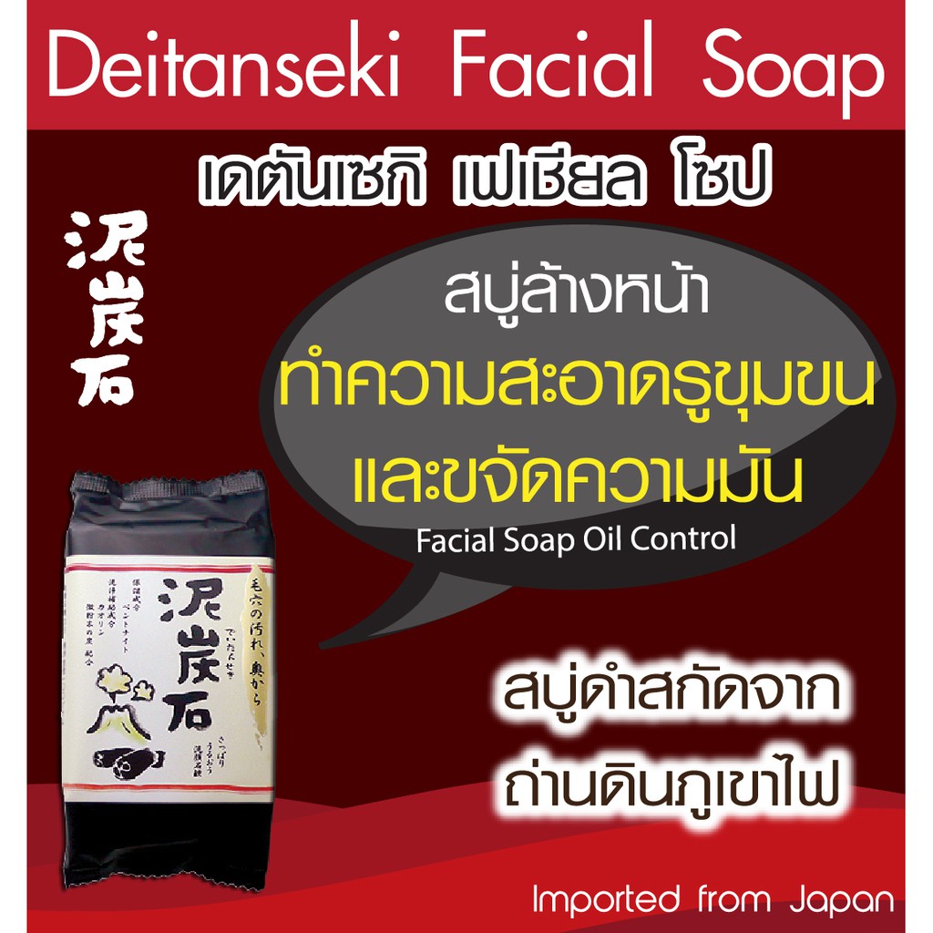 Deitanseki Facial Soap 30g. / 100g. สบู่ เดตันเซกิ สบู่ถ่านภูเขาไฟ บริสุทธิ์ ก้อนเล็ก 30 กรัม / ก้อนใหญ่ 100 กรัม
