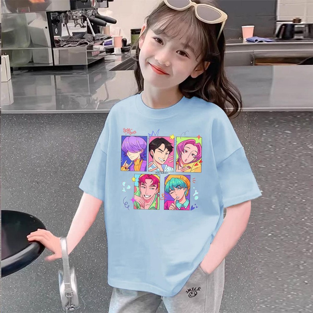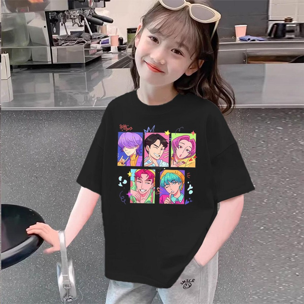 (จัดส่งตลอด 24 ชั่วโมง)พร้อมส่ง เสื้อยืดแขนสั้นเด็ก Kpop Demon Hunters ลายพิมพ์ เสื้อยืด cotton 100 ใส่สบาย คอกลม J178