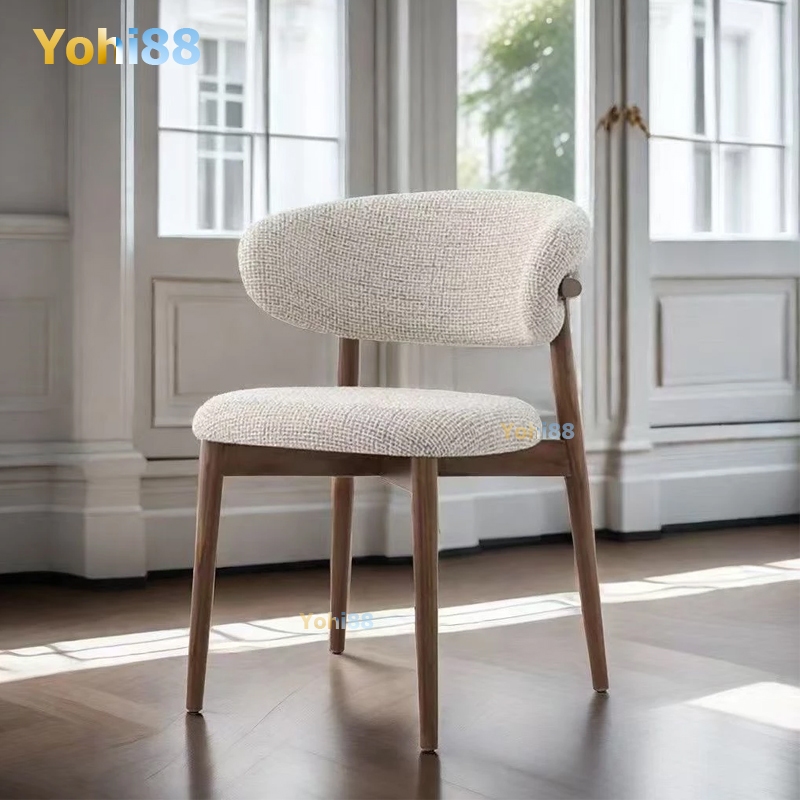 เก้าอี้รับประทานอาหารไม้เนื้อแข็งเบาะผ้าลินินผ้าฝ้ายป่านกลับเก้าอี้นุ่มเก้าอี้สบายเหมาะกับการปรับแต่ง เก้าอี้ทานอาหาร
