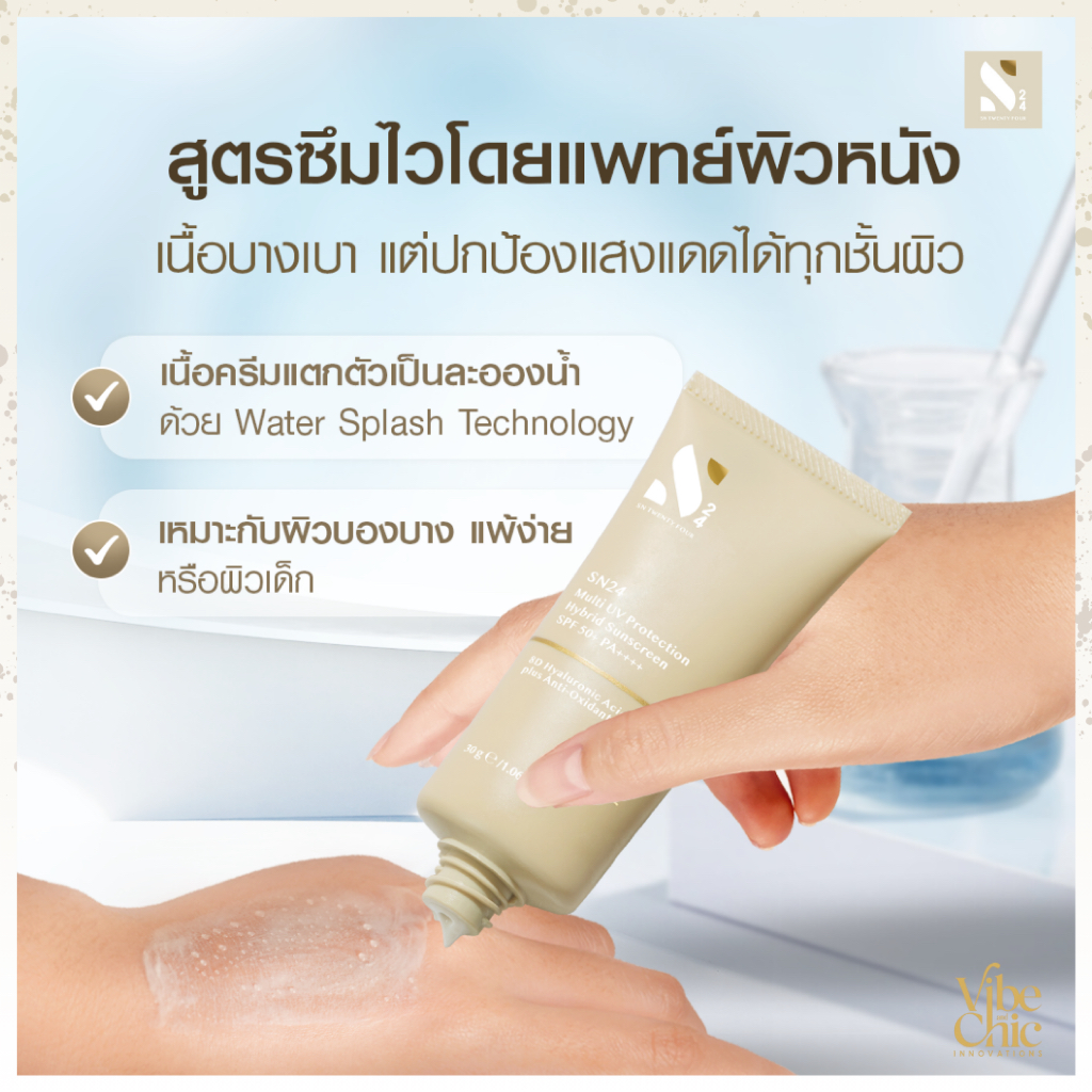 [2 หลอด] SN24 Multi UV Protection Hybrid Sunscreen SPF50+ PA++++ ครีมกันแดดสูตรแพทย์ผิวหนัง