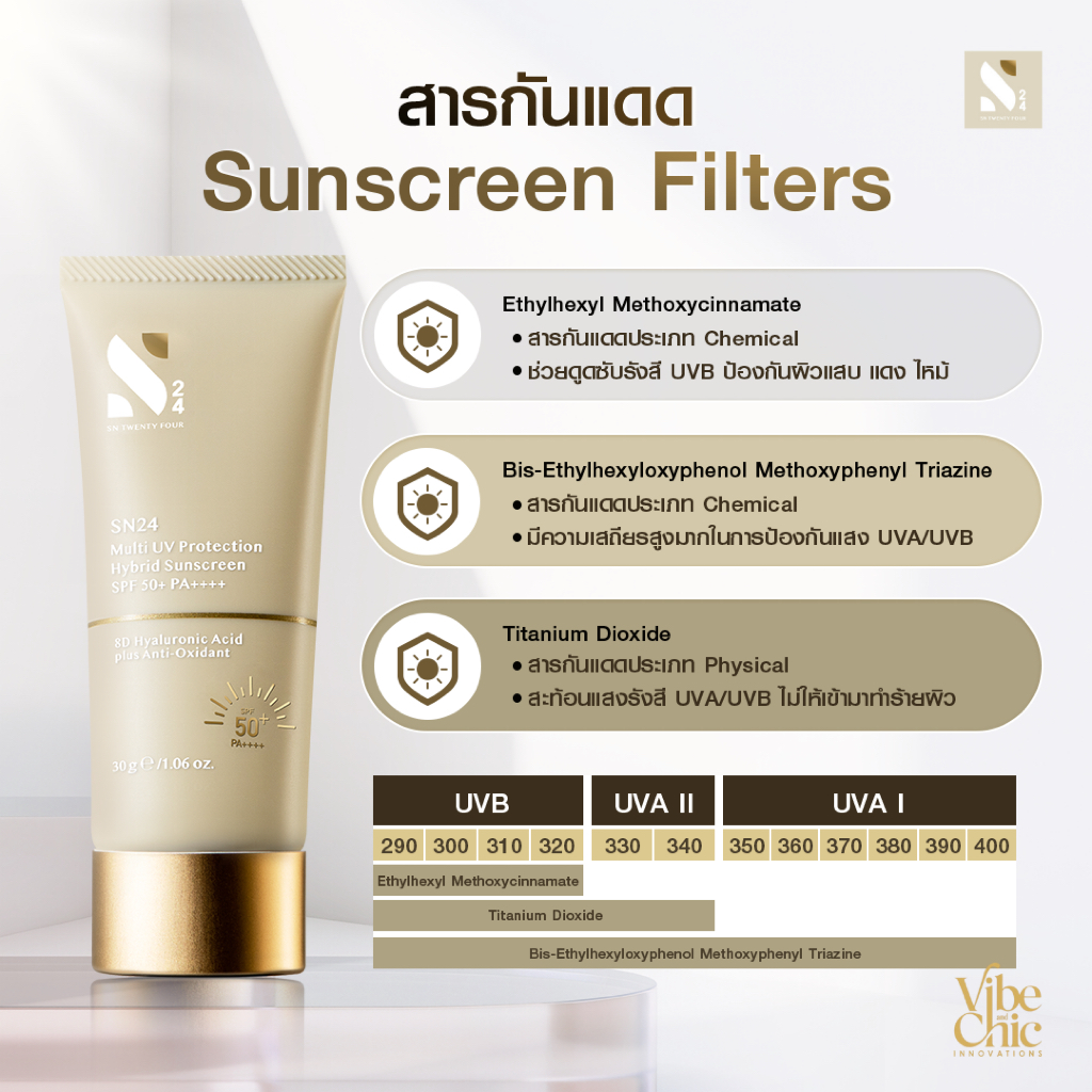 [3 หลอด] SN24 Multi UV Protection Hybrid Sunscreen SPF 50+ PA++++ ครีมกันแดดสูตรแพทย์ผิวหนัง