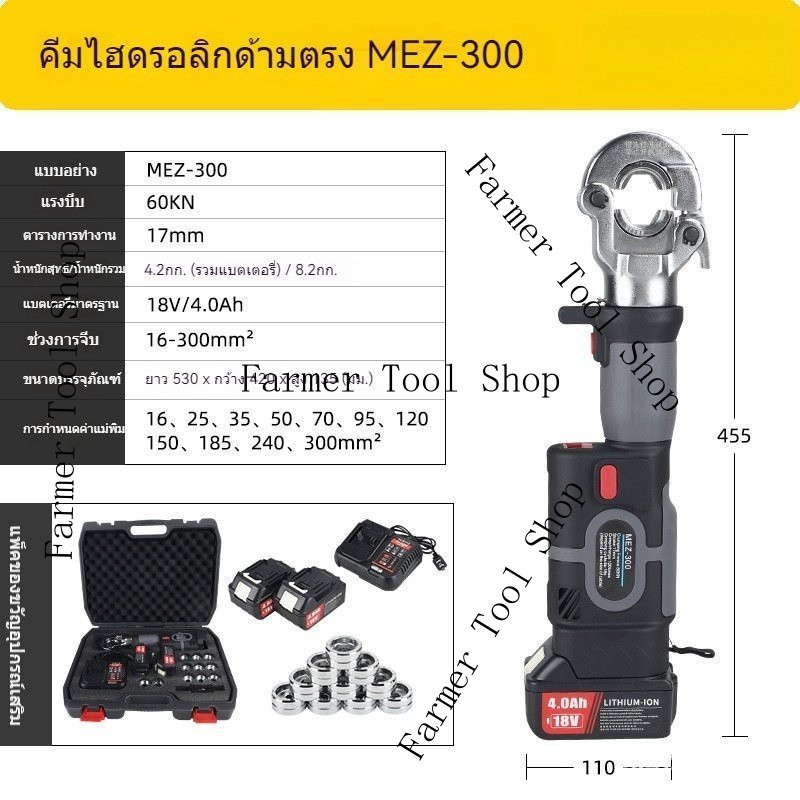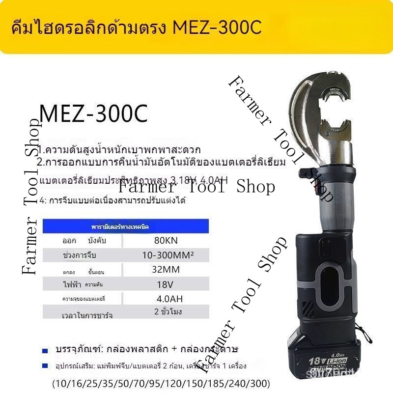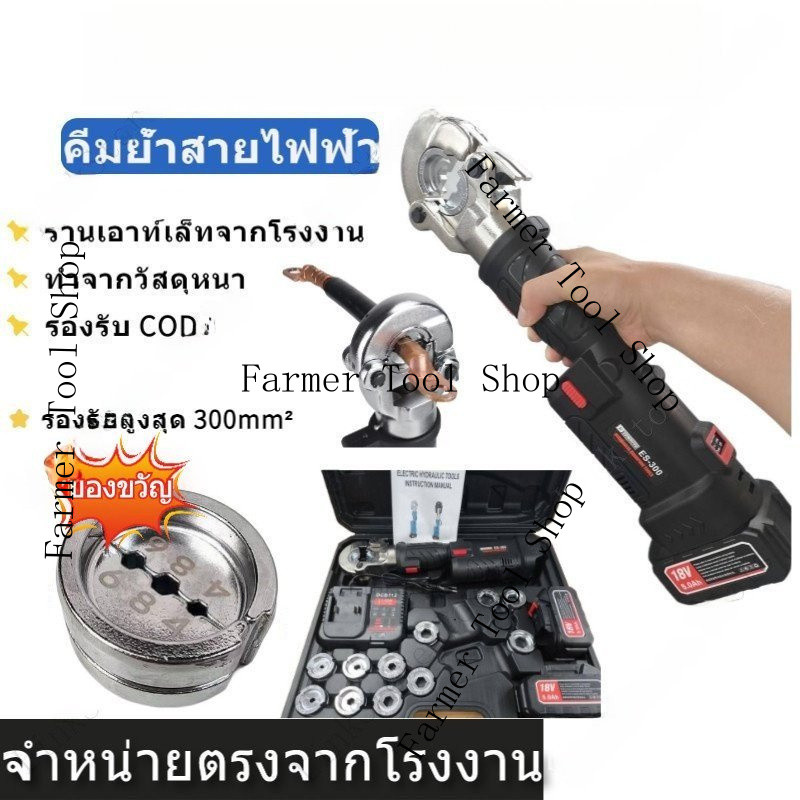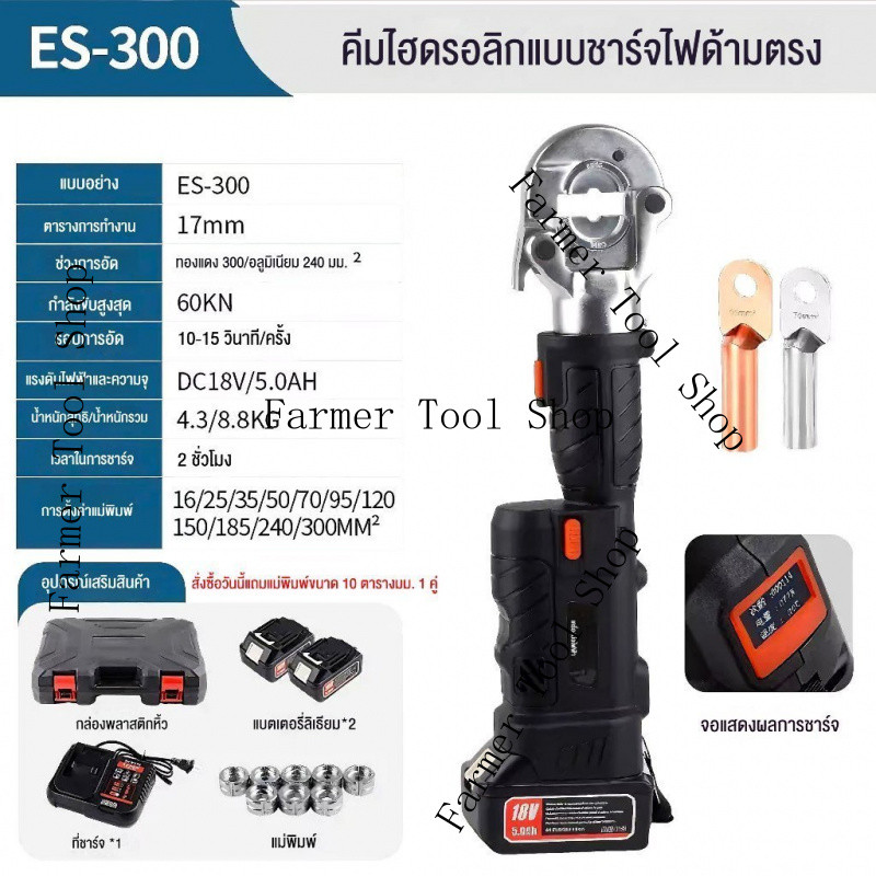 【New】ES-300 คีมไฮดรอลิกไร้สาย ด้ามจับตรง คีมไฮดรอลิกแบตเตอรี่ลิเธียม คีมย้ำสายเคเบิล รองรับการทำงานต่อเนื่อง FO8W