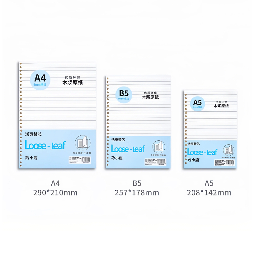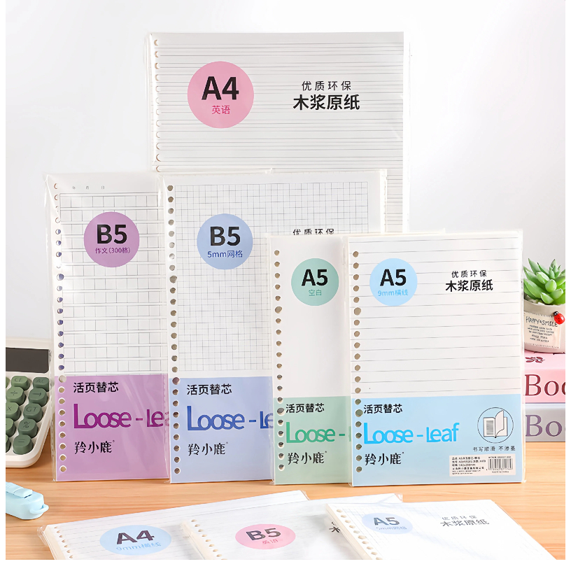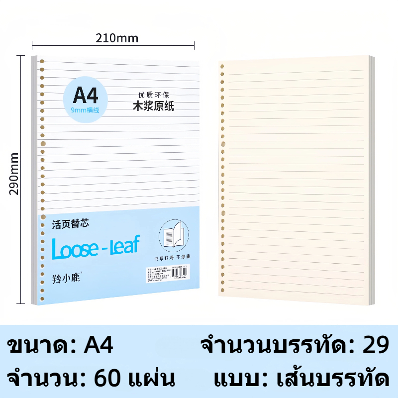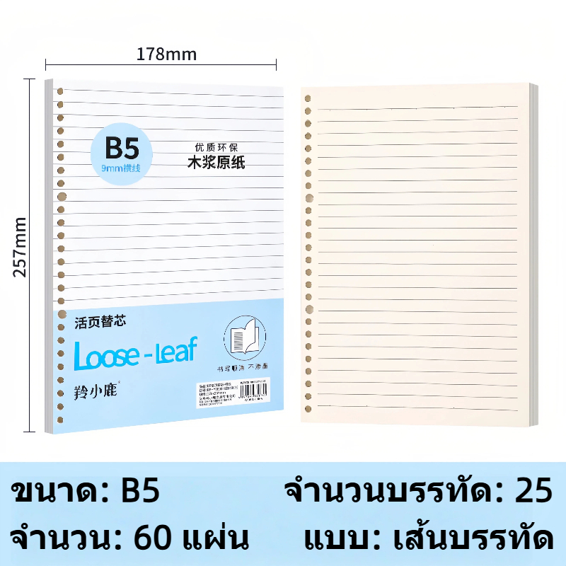กระดาษรีฟิล Loose Leaf A5/B5/A4 60 แผ่น มีรู ใส่สมุดสันห่วง คุณภาพดี เหมาะสำหรับนักเรียนและสำนักงาน