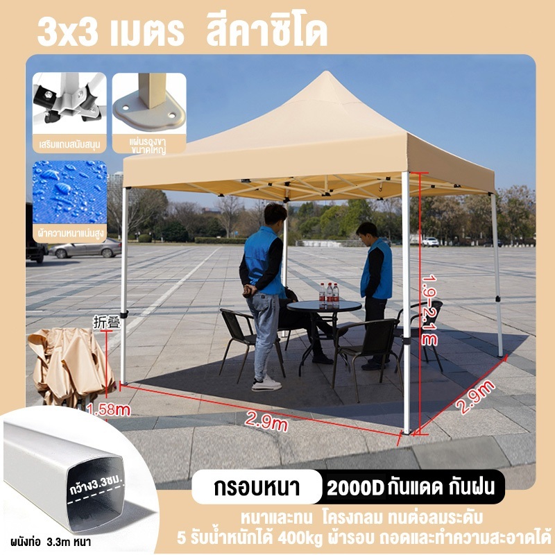 【รับประกัน10ปี】เต้นท์ขายของ เต้นท์ ขาย เต็นท์พับได้ เต็นท์ 2x2 3x3 3x6 เต๊นท์สนาม เต็นท์จอดรถ 2000D