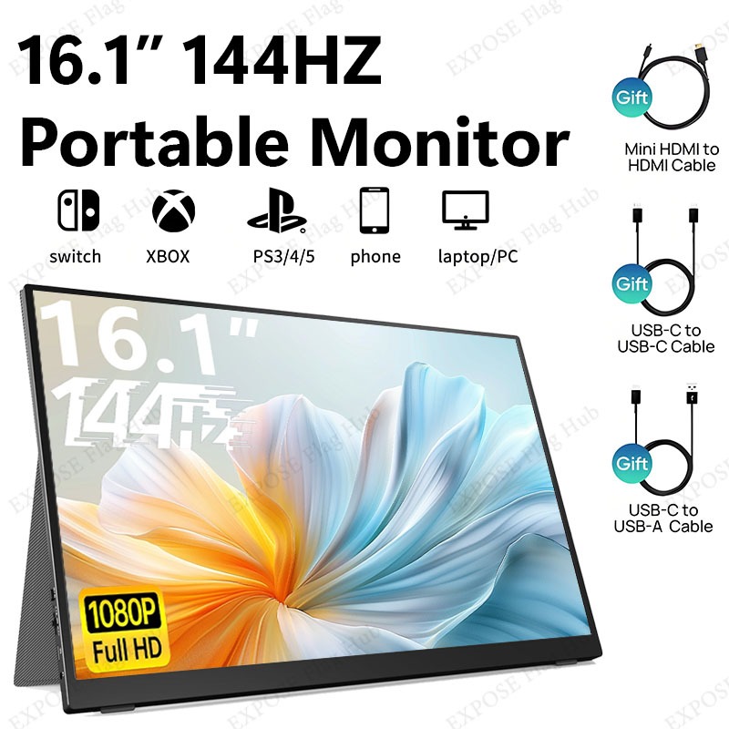 จอภาพแบบพกพา 16.1 นิ้ว 144HZ Portable Monitor 1080P LED จอ สำหรับเกม จอภาพสำหรับเล่นเกม HDMI TYPE-C