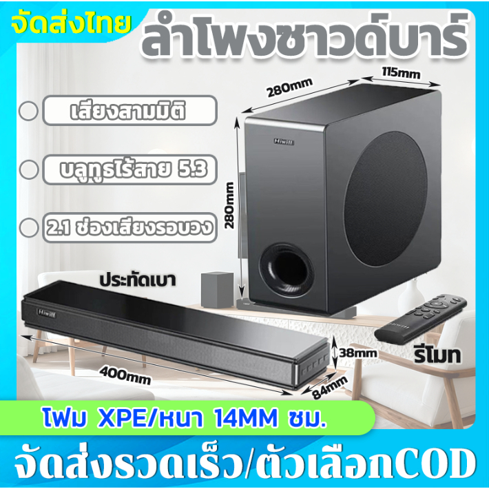 📺ซาวด์บาร์ 📺ลำโพงทีวี ระบบเสียงรอบทิศทาง 2.1 แชนเนล Bluetooth 5.3 ไร้สายพร้อมรีโมทคอนโทรล เสียงรอบทิศทางสเตอริโอ