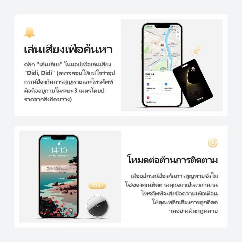 Hoco E92 Tag อุปกรณ์ติดตาม GPS รูปแบบการ์ด ค้นหาตำแหน่งสิ่งของ กันของหาย สำหรับ iOS รองรับ Apple Find My กันน้ำ IP68 hc6