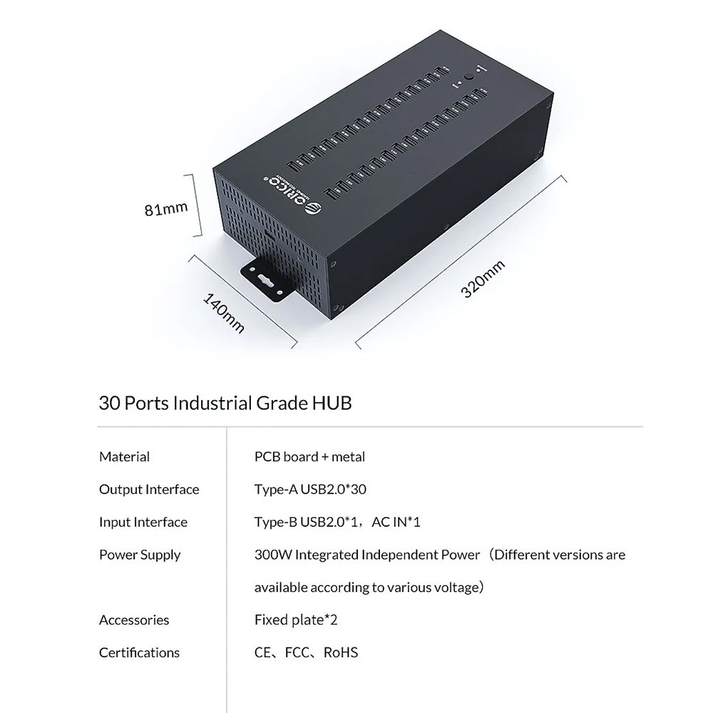 ORICO USB HUB 20 30 พอร์ต USB 2.0 Hub Splitter สําหรับ U Disk Data Test ชุด Replication 300W สําหรับแล็ปท็อปอุปกรณ์เสริม (IH20P/IH30P)