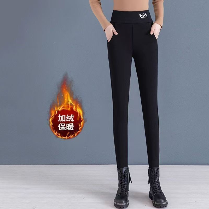 韩季新款加绒打底裤女外穿新款2024款冬加厚保保暖棉棉显瘦裤เลกกิ้งกํามะหยี่สําหรับสวมใส่กลางแจ้งของผู้หญิงรุ่น 2024เสื้อคอปกตุ๊กต
