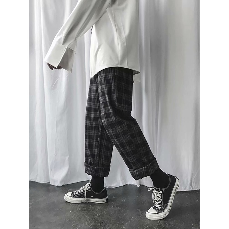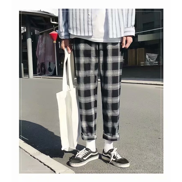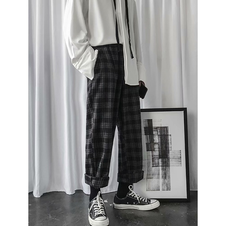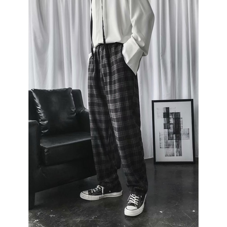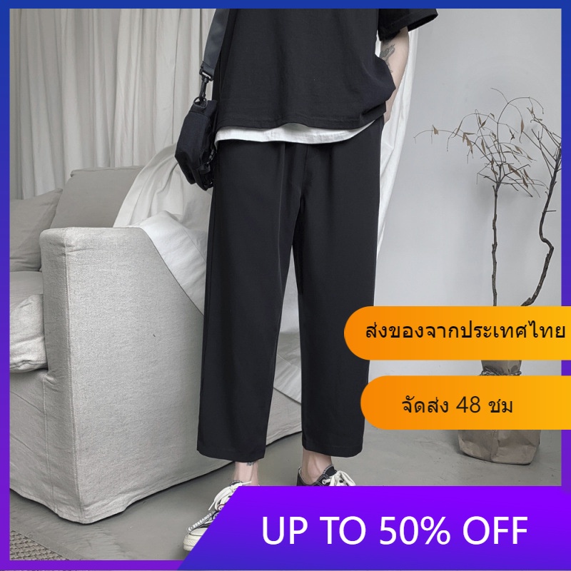 FM🌸กางเกงขายาวผู้ชาย เวอร์ชั่นเกาหลี ขัดแตะ แฟชั่น สีทึบ ขนาดใหญ่ ส่งไวจากไทย
