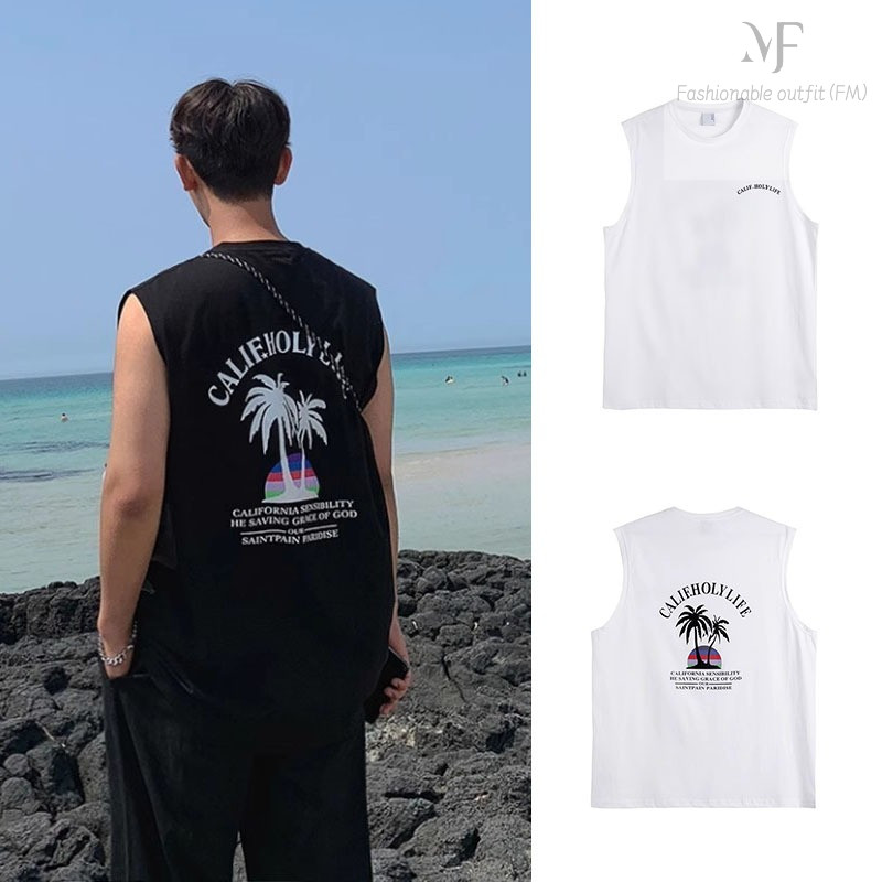 แนะนำเสื้อยืดแขนกุด พิมพ์ลาย เทรนด์ชายหาด ฤดูร้อน สำหรับผู้ชาย M-3XL ส่งเร็วจากไทย (FM)