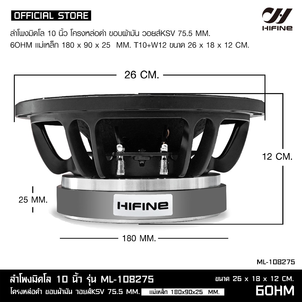 HIFINE ดอกลำโพงมิดโล10นิ้วมี4รุ่นให้เลือกML-10425/ML-1060P/ML-10526/ML-108275 มีหน้าดำเเละหน้าม่วง