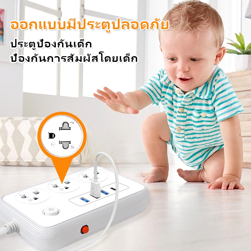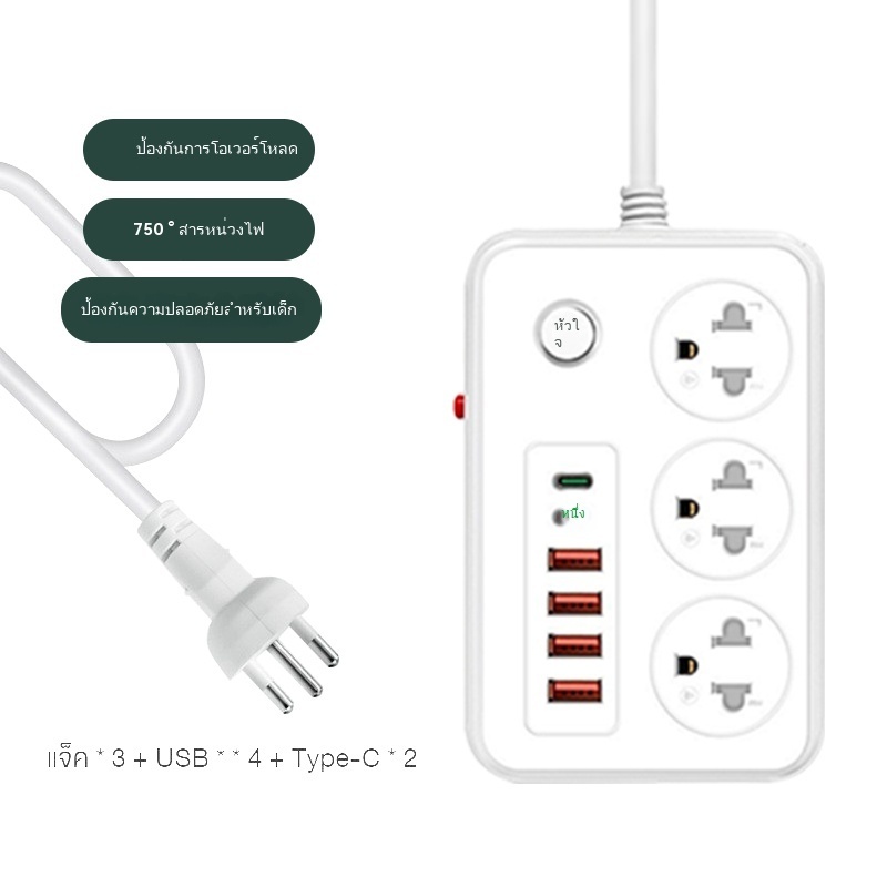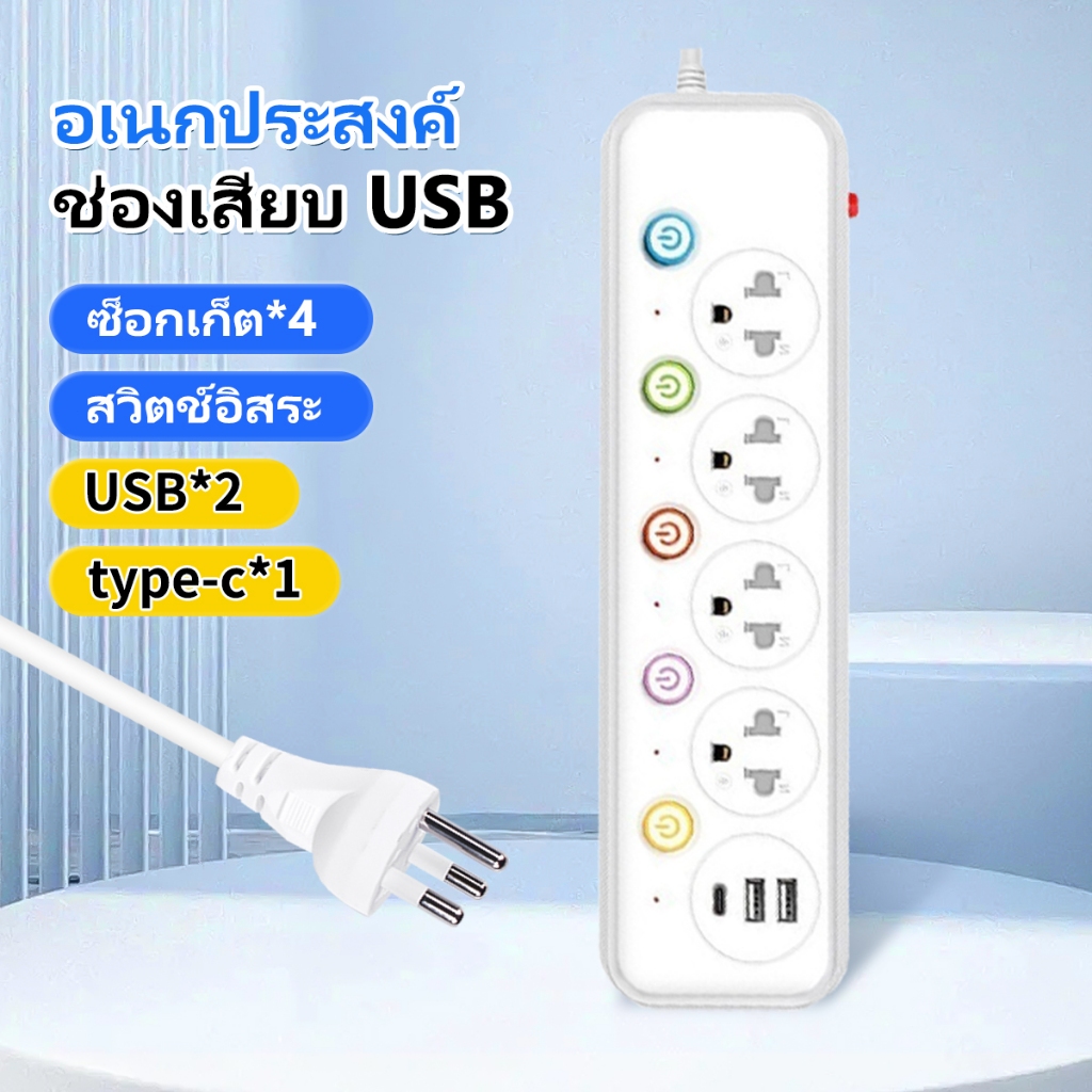 ปลั๊กไฟสี่เหลี่ยม 2300W รางปลั๊กไฟ การออกแบบพอร์ตชาร์จ USB Type-c หลายตัวซ็อกเก็ตรางปลั๊กไฟพร้อมสวิตช์หลักซ็อก เก็ต